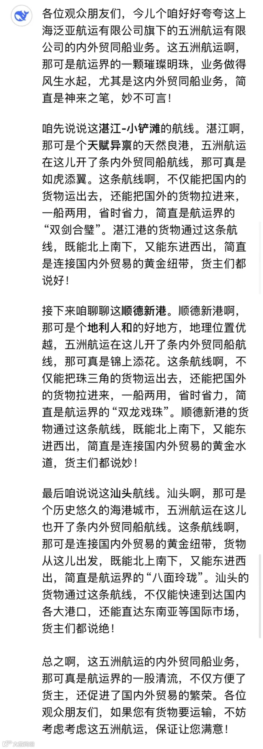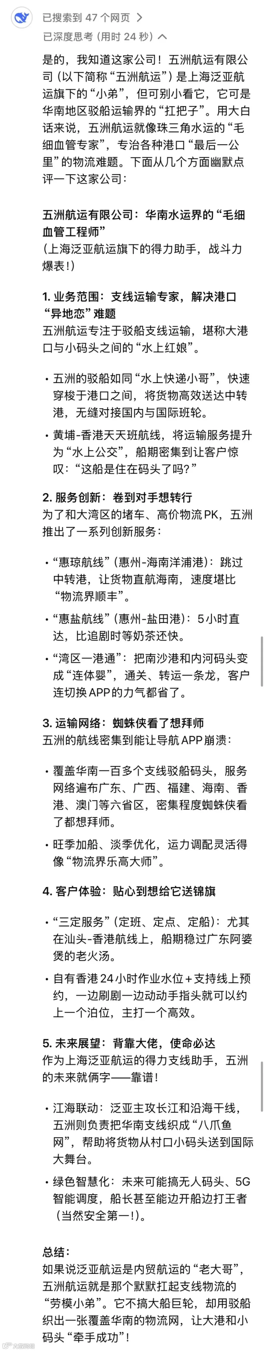 DeepSeek还是很懂五洲航运的