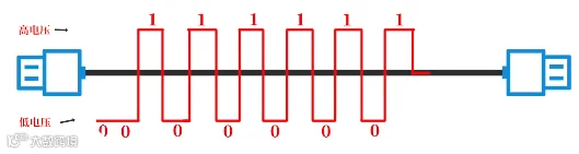 在USB的数据传输协议中,芯片会根据传输的内容对USB接口里的电压进行控制,通过控制电压变化来达到传输数据的目的,比如:传输520这个数字,协议会将520转变成1000001000这样的二进制编码,然后芯片只需要通过控制电压高低,来表示0和1,就能传输数据了。