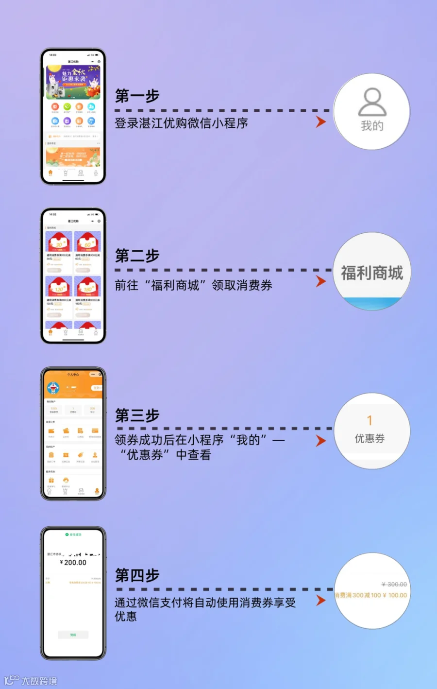 领取消费券后,在线上平台购买湛江家电产品,同一用户、每期活动、每类消费券只可领取一张,最多可领取2张,领券后在使用期限内可以直接使用消费券抵扣优惠金额。