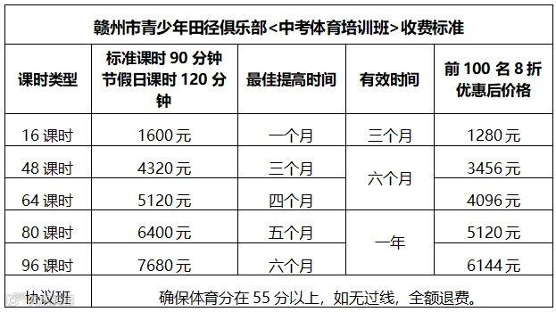 赣州市青少年田径俱乐部是专致于青少年竞技体育发展的团队,该俱乐部由奥运冠军发起,资深教练,悉心指导,教练员均由国家一级以上退役运动员组成,针对体育中高考项目特点,制定系统训练计划,能够快速,准确,时效的提高体育中高考成绩,让您的孩子享受运动健康的同时体能得到的全方位提升。