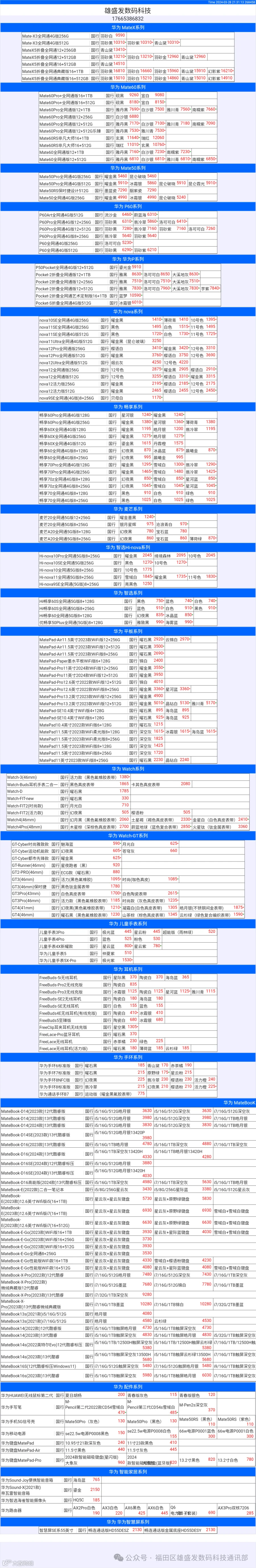 新机报价【2024年3月28日】华为   荣耀 报价 芯烨微 电子科技