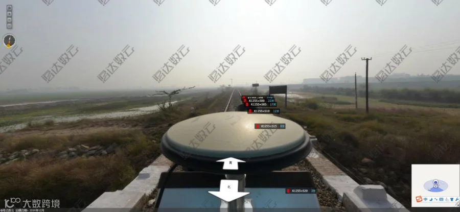 全景中加入里程桩标识,浏览过程中可以很直观地辨别出某个里程线位对应哪些地物,可以辅助进行铁路调查。