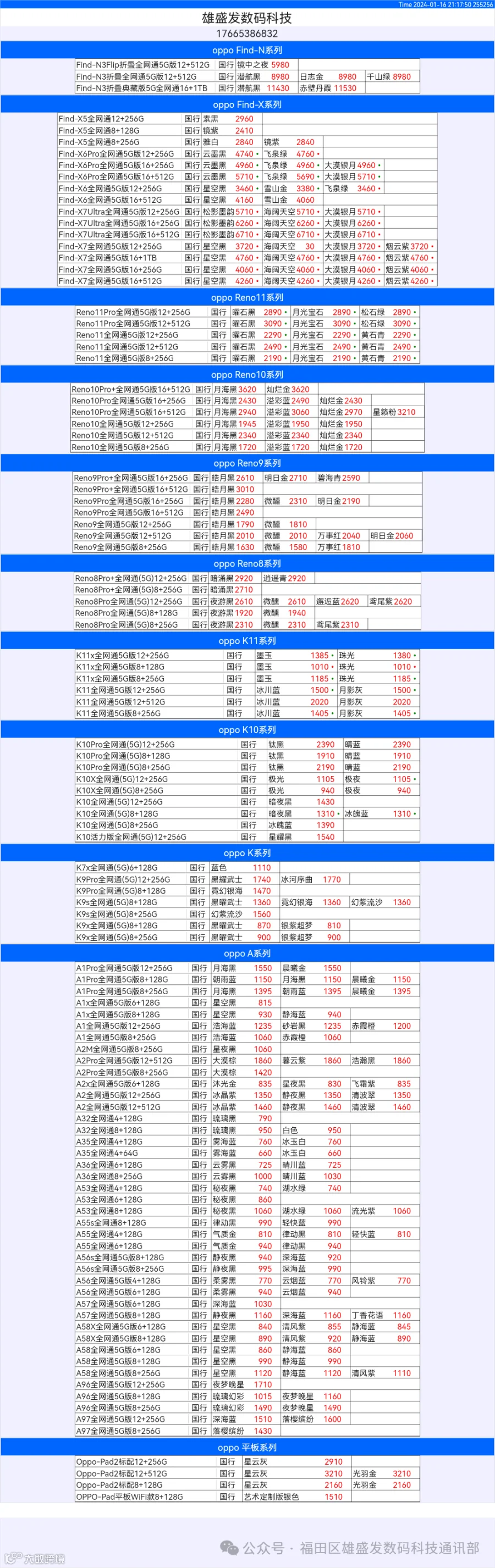 新机报价【2024年1月16日】OPPO   VIVO  IQOO   一加   真我 芯烨微 电子科技