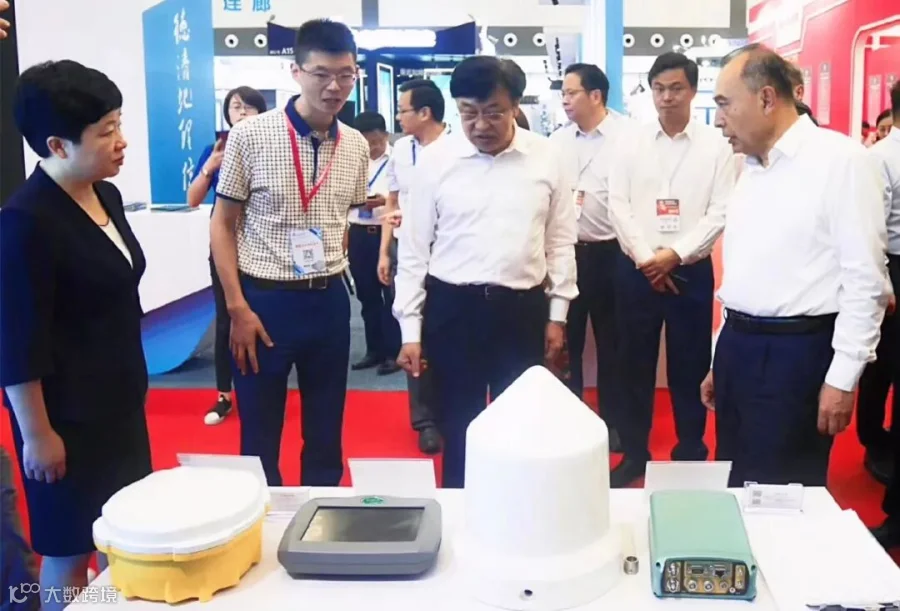 自然资源部副部长库热西·买合苏提(右一)和浙江省常务副省长冯飞(左三)了解中海达安控产品