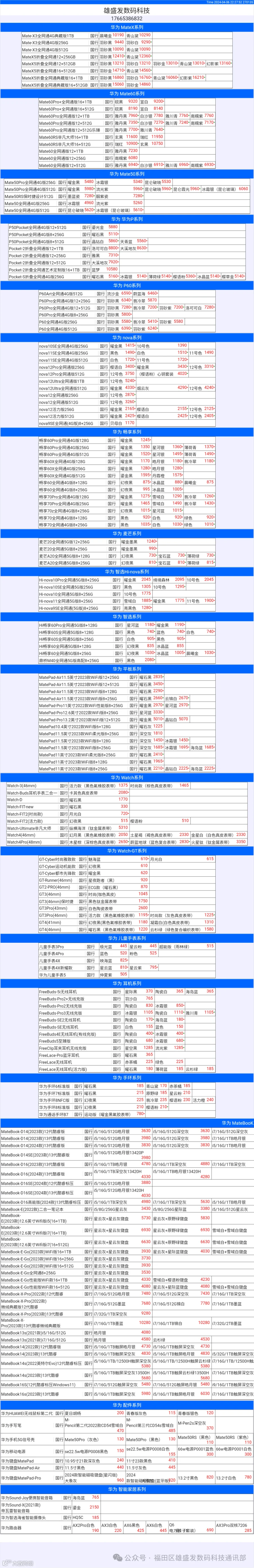 新机报价【2024年4月6日】华为   荣耀 报价 芯烨微 电子科技