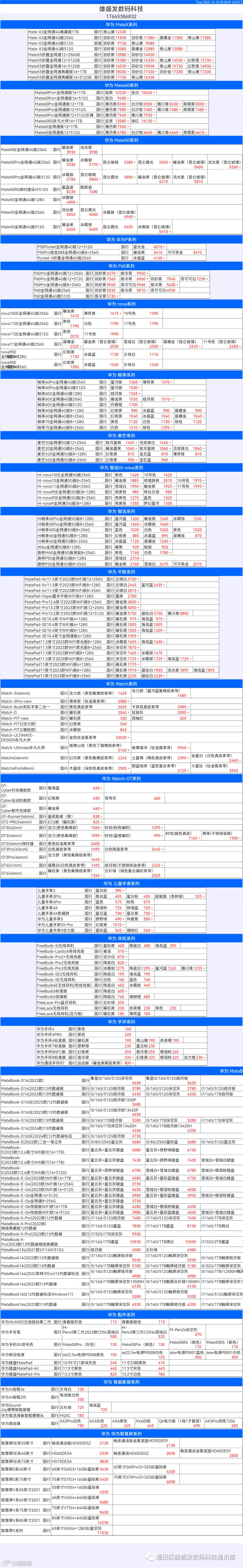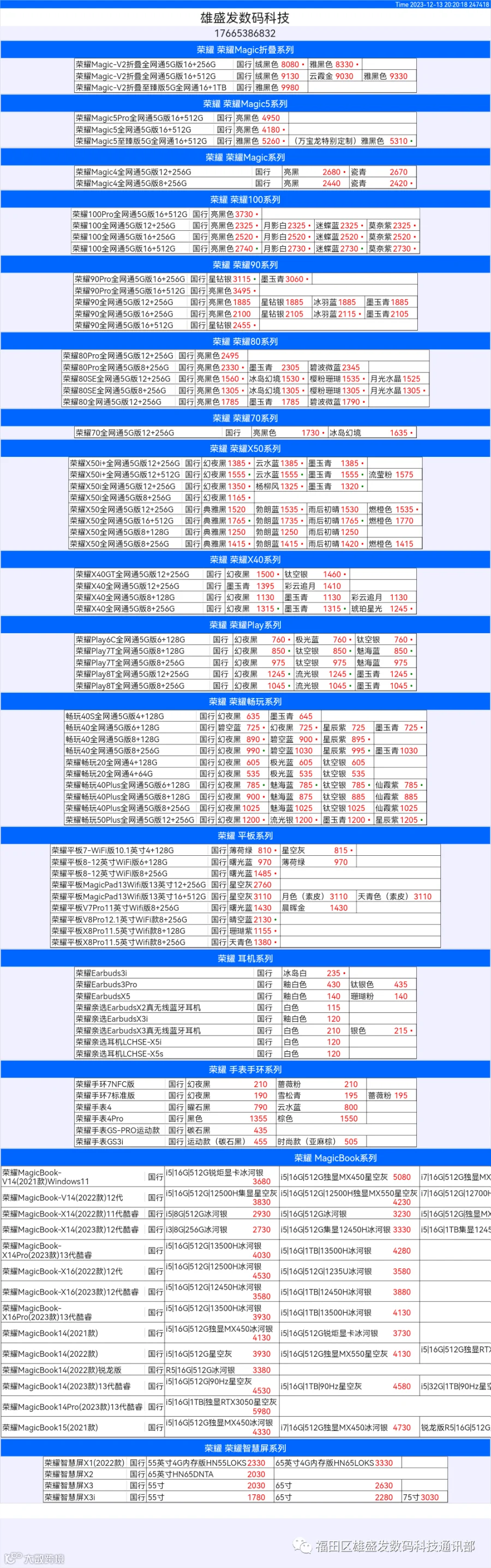 新机报价【2023年12月13日】华为   荣耀 报价 芯烨微 电子科技
