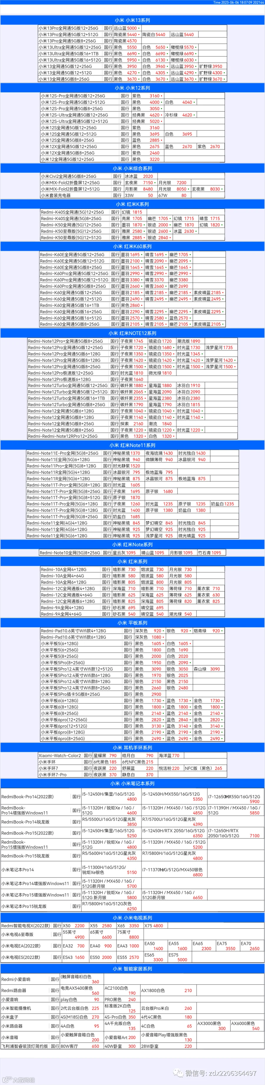 新机报价【2023年6月6日】小米  红米   黑鲨   报价 芯烨微 电子科技
