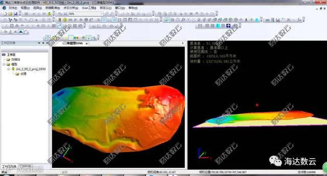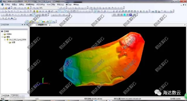 利用HD 3LS SCENE软件将剔除,直接计算出目的区域DEM,按实体模型渲染。