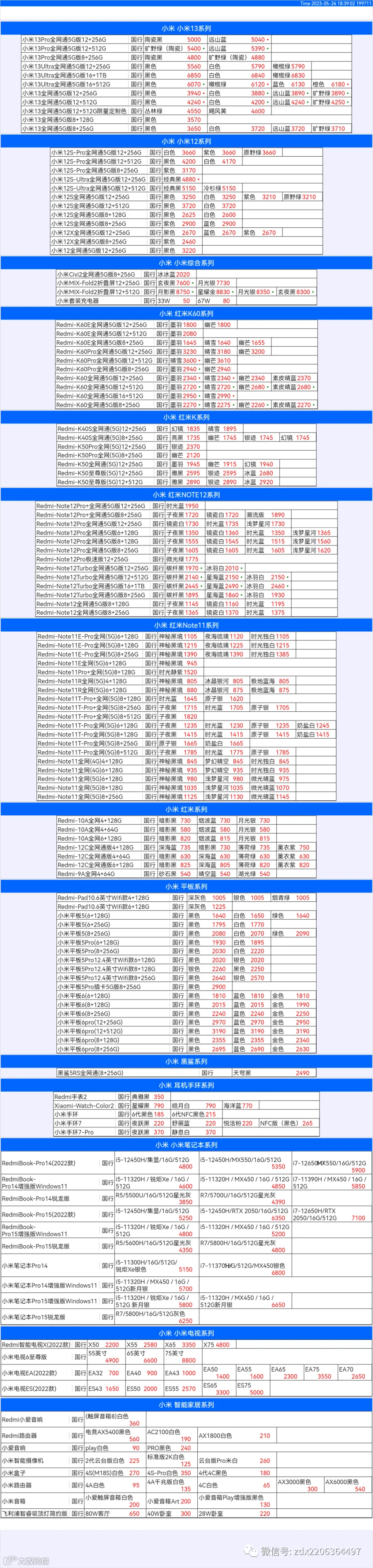 新机报价【2023年5月26日】小米  红米   黑鲨   报价 芯烨微 电子科技