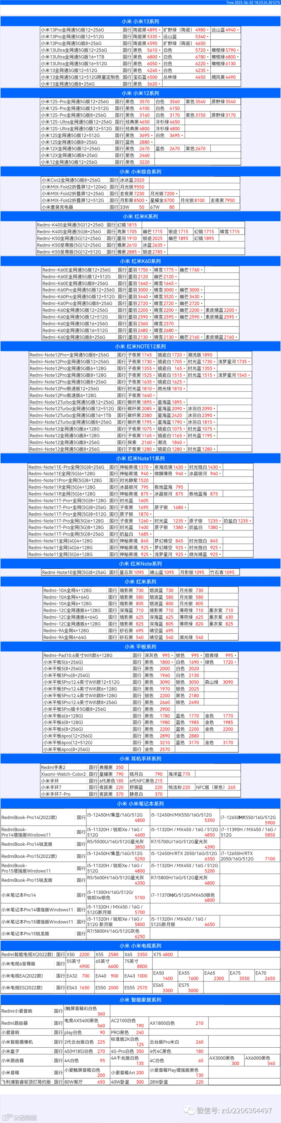 新机报价【2023年6月2日】小米  红米   黑鲨   报价 芯烨微 电子科技