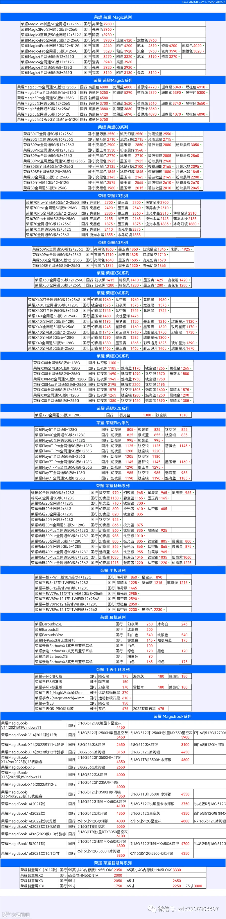 新机报价【2023年5月29日】华为   荣耀 报价 芯烨微 电子科技