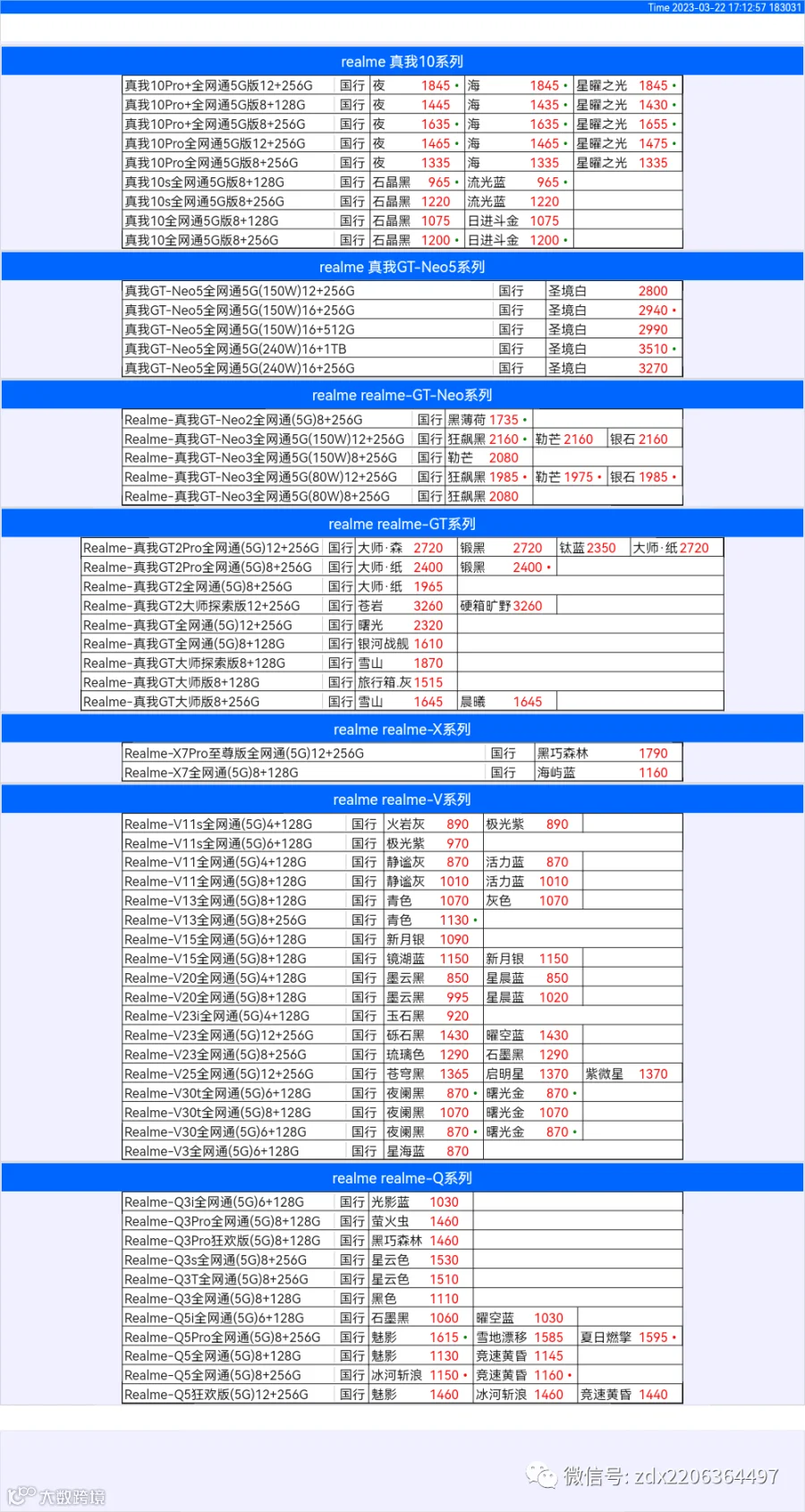 新机报价【2023年3月23日】OPPO   VIVO  IQOO   一加   真我 芯烨微 电子科技