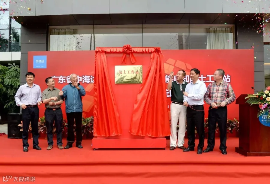 刘先林院士(左三)与中海达董事长廖定海(右三)等人一起为院士工作站揭牌