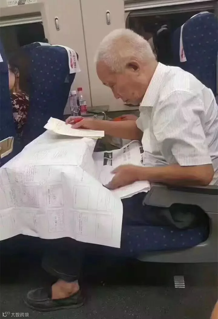 6月12日,回北京的高铁二等座上,为了做好一场报告,78岁高龄的刘先林院士仍然笔耕不辍。照片被网友披露后,观察者网、人民日报、凤凰新闻等媒体相继跟进报道,大家纷纷对这位敬业的老院士表达敬仰之情。