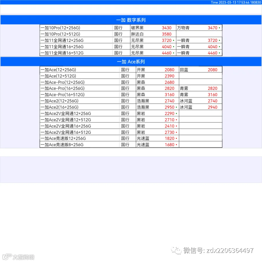 新机报价【2023年3月13日】OPPO   VIVO  IQOO   一加   真我 芯烨微 电子科技
