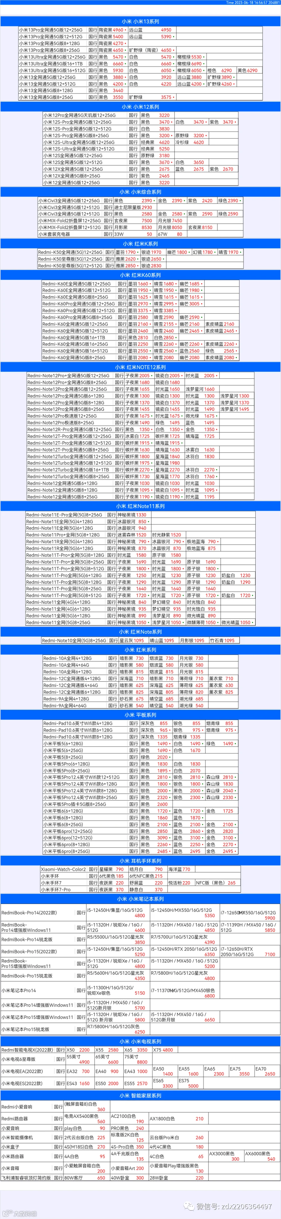 新机报价【2023年6月18日】小米  红米   黑鲨   报价 芯烨微 电子科技