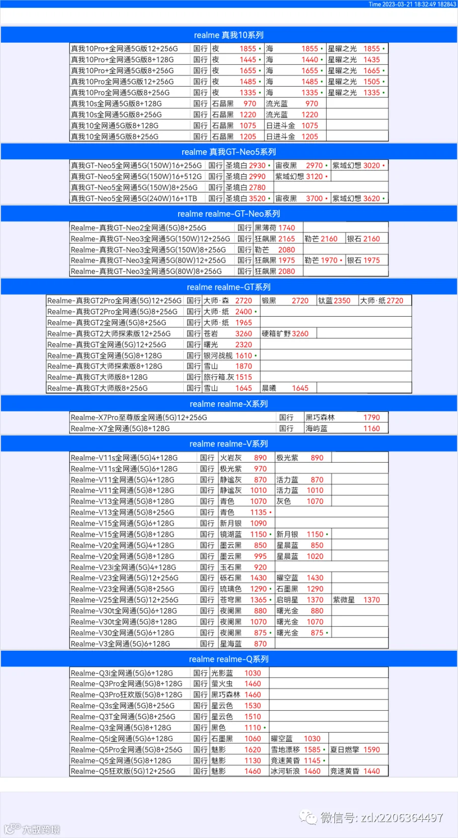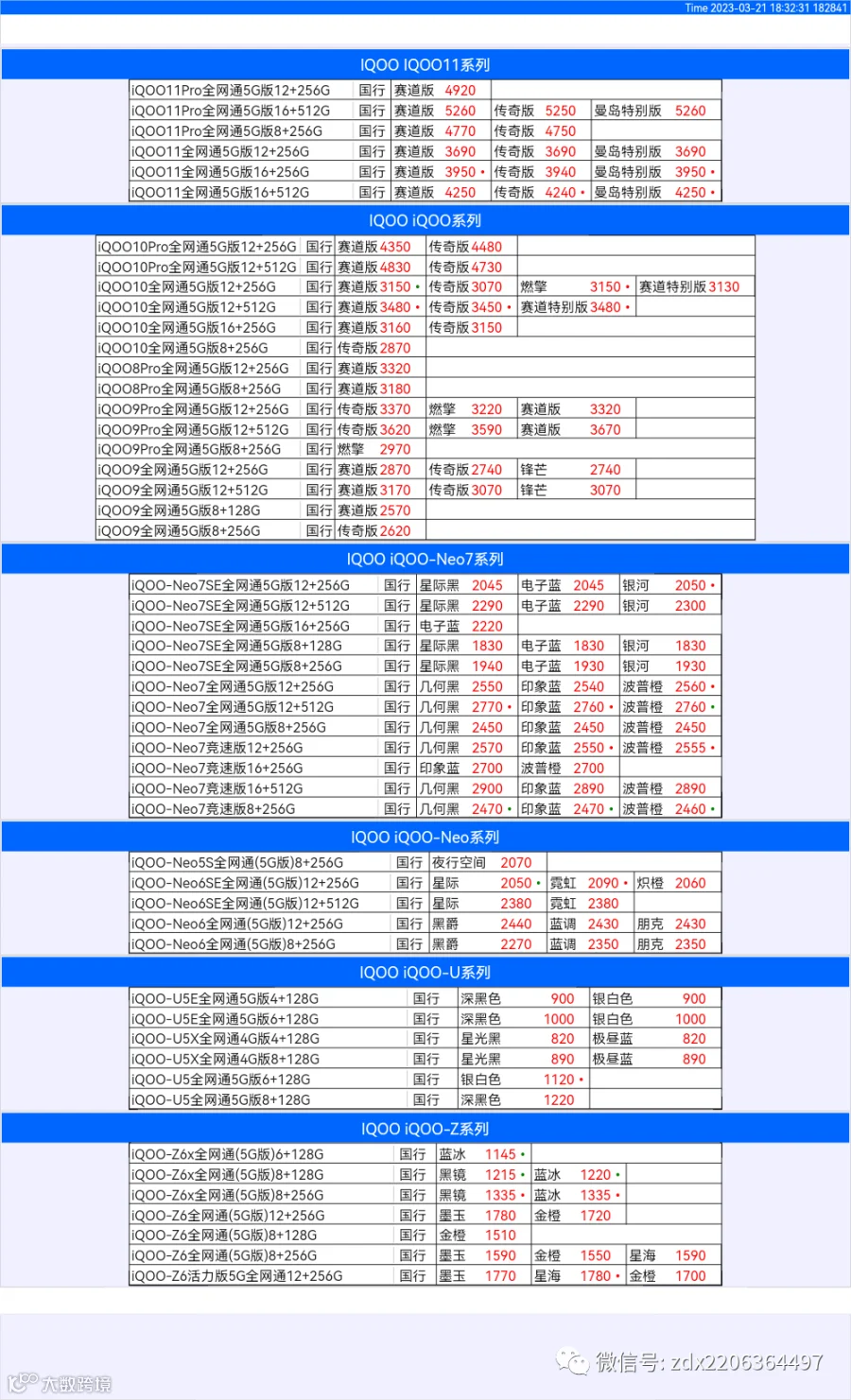 新机报价【2023年3月21日】OPPO VIVO IQOO 一加 真我