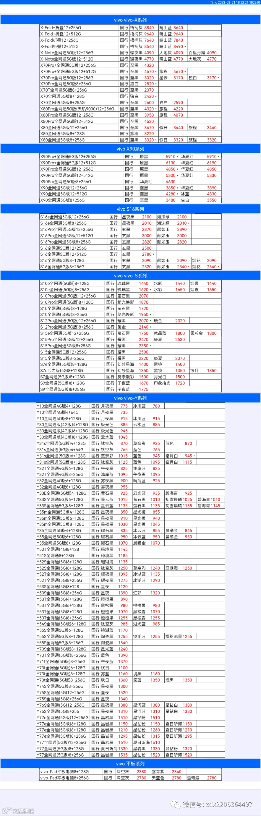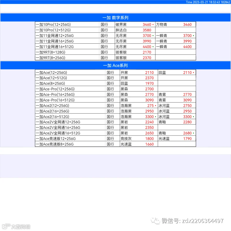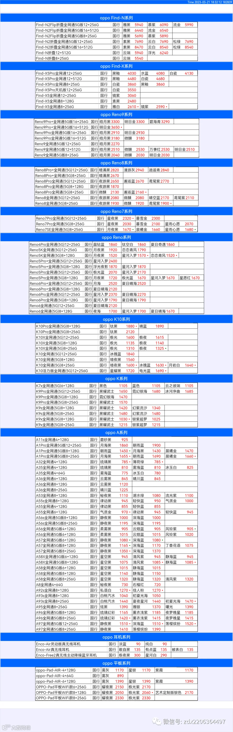 新机报价【2023年3月21日】OPPO   VIVO  IQOO   一加   真我 芯烨微 电子科技
