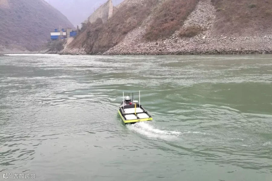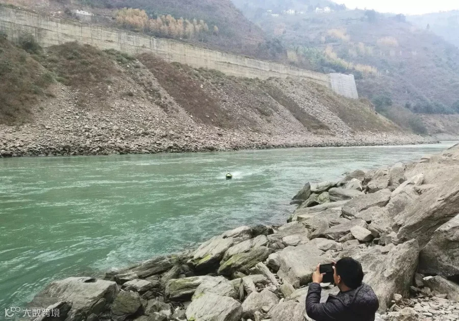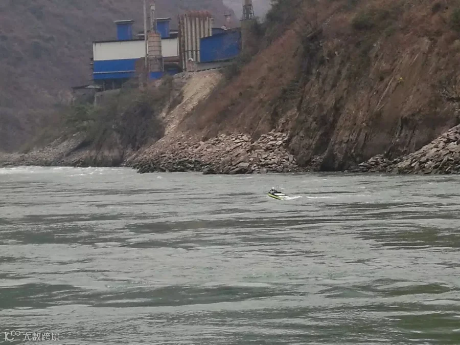 此次作业河段位于沙坪二级水电站下游,水流湍急,流速达到2-3m/s。河两岸是巍峨连绵的山脉,坡度大地势陡峭,大型船舶投放困难。在这样的作业环境下,无人船是不二之选。