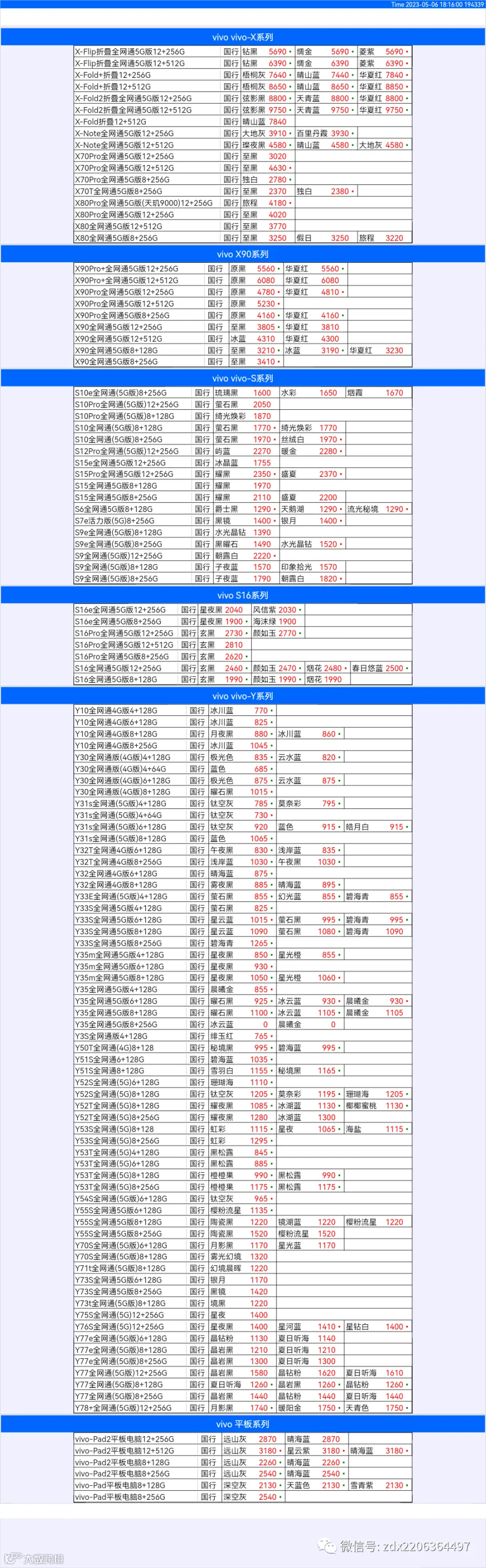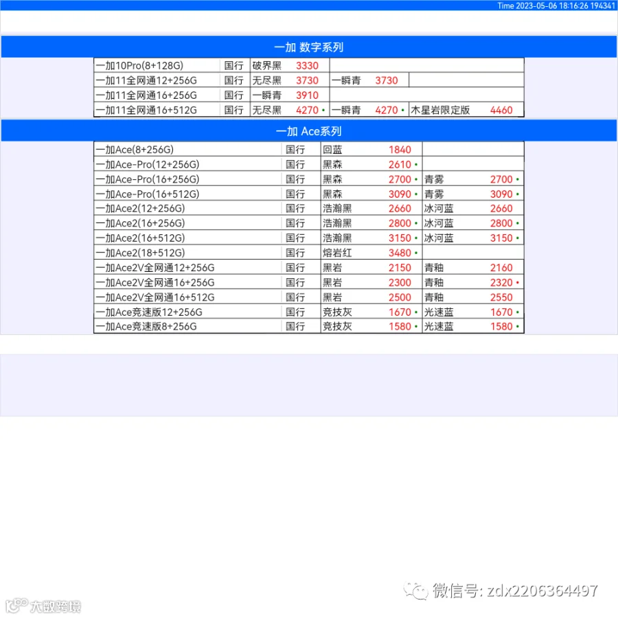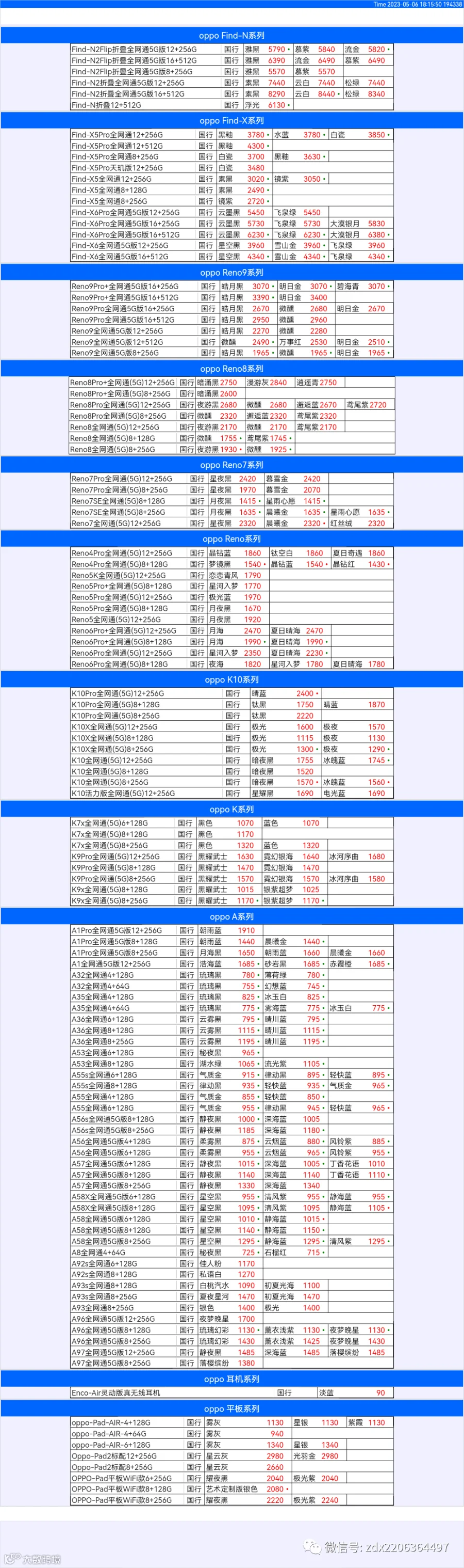 新机报价【2023年5月6日】OPPO   VIVO  IQOO   一加   真我 芯烨微 电子科技