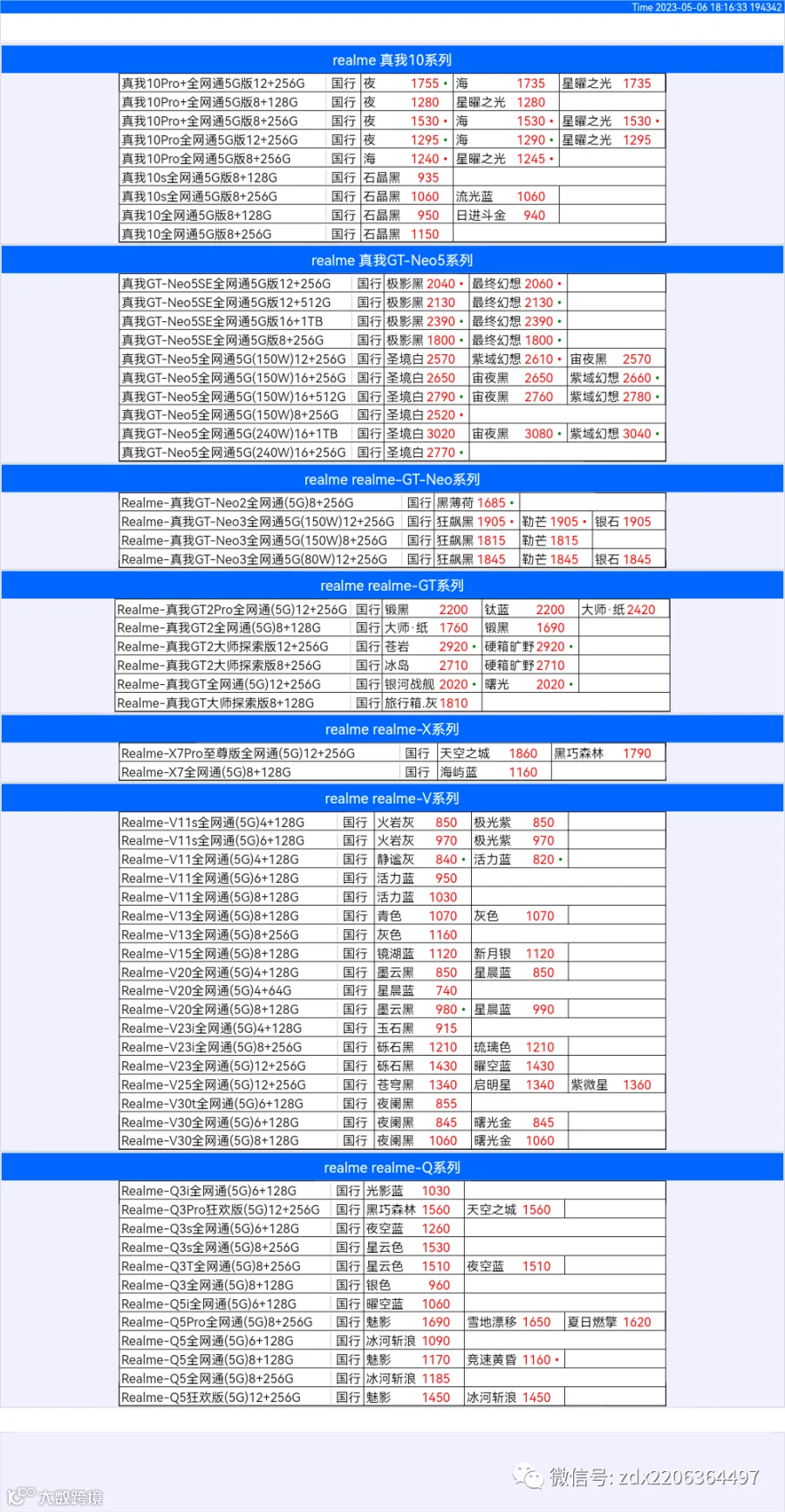 新机报价【2023年5月6日】OPPO VIVO IQOO 一加 真我