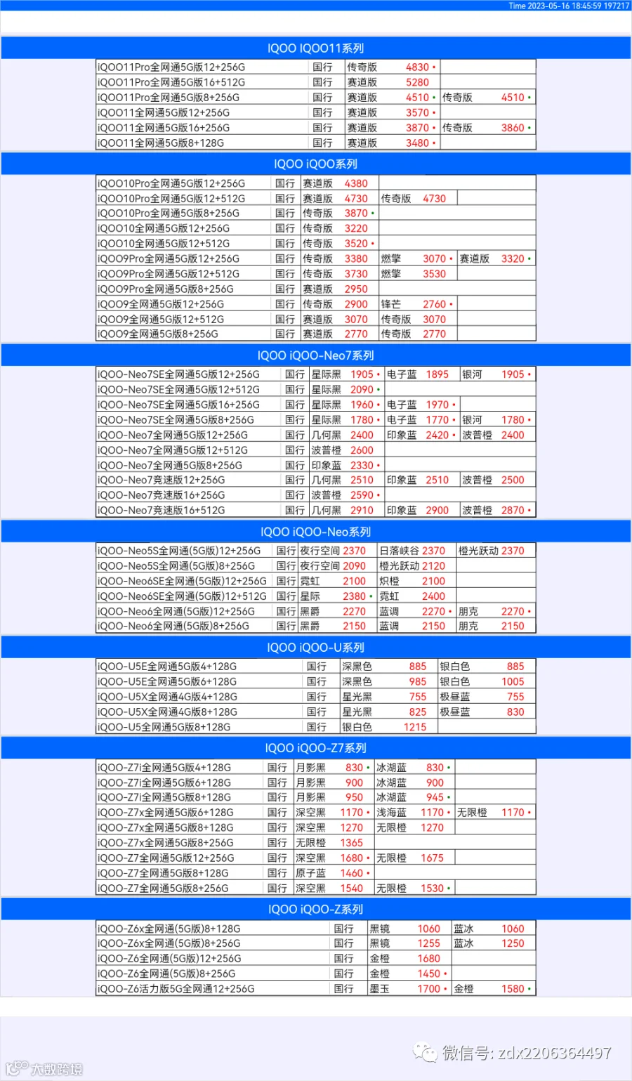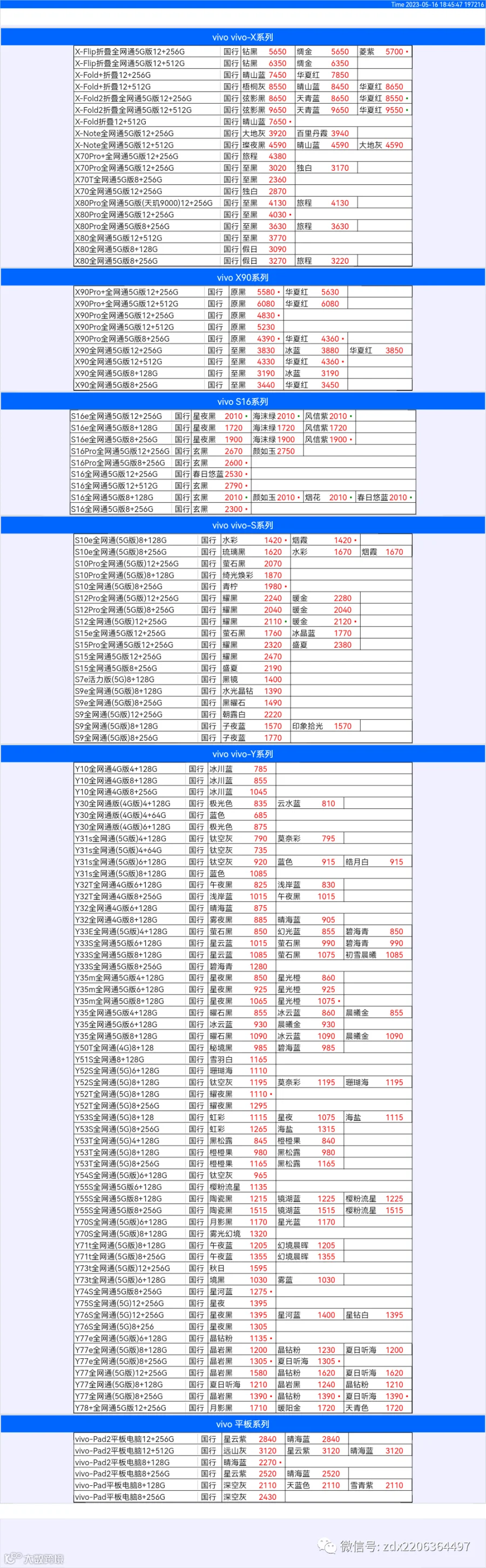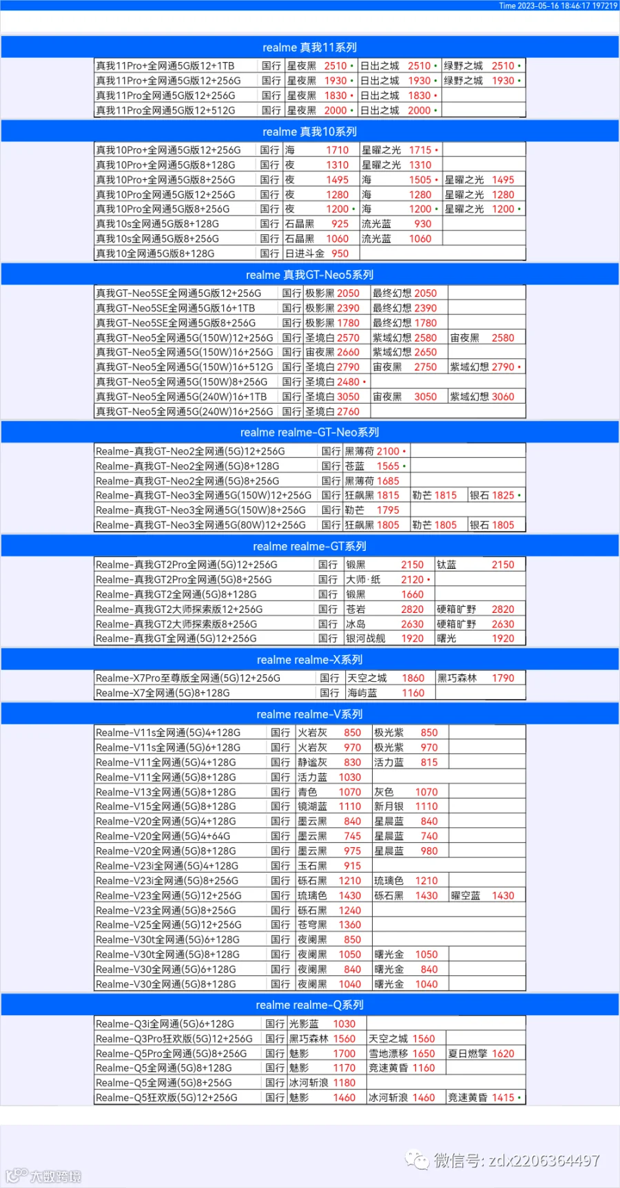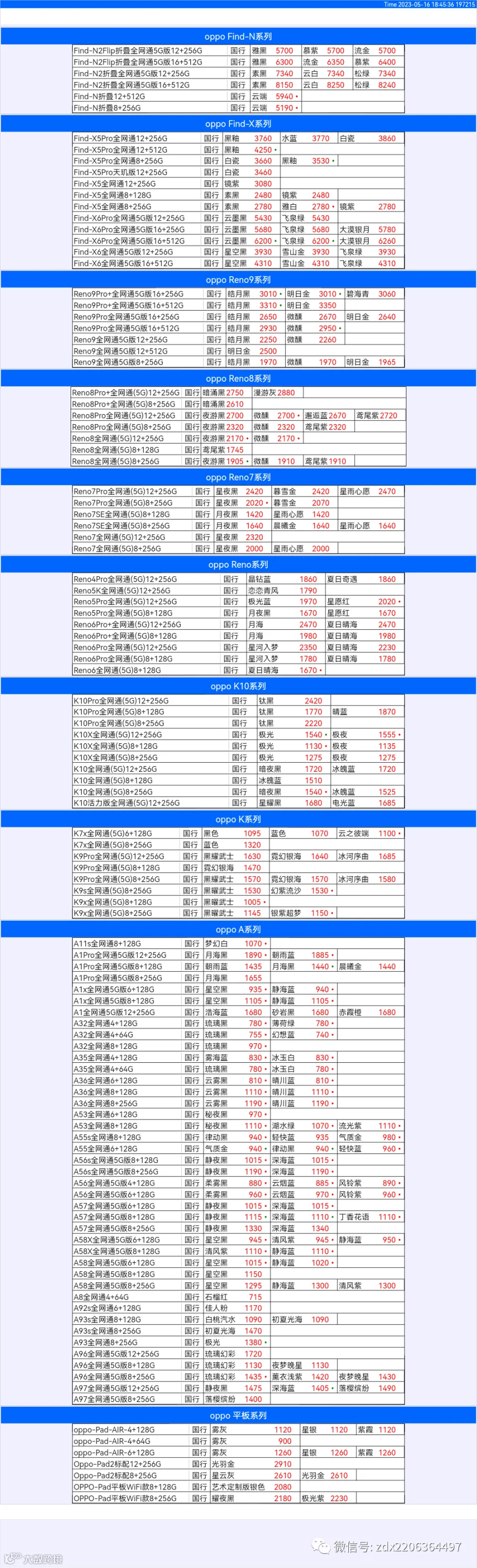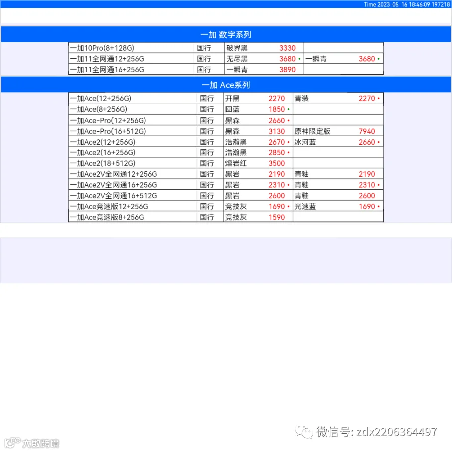 新机报价【2023年5月16日】OPPO   VIVO  IQOO   一加   真我 芯烨微 电子科技