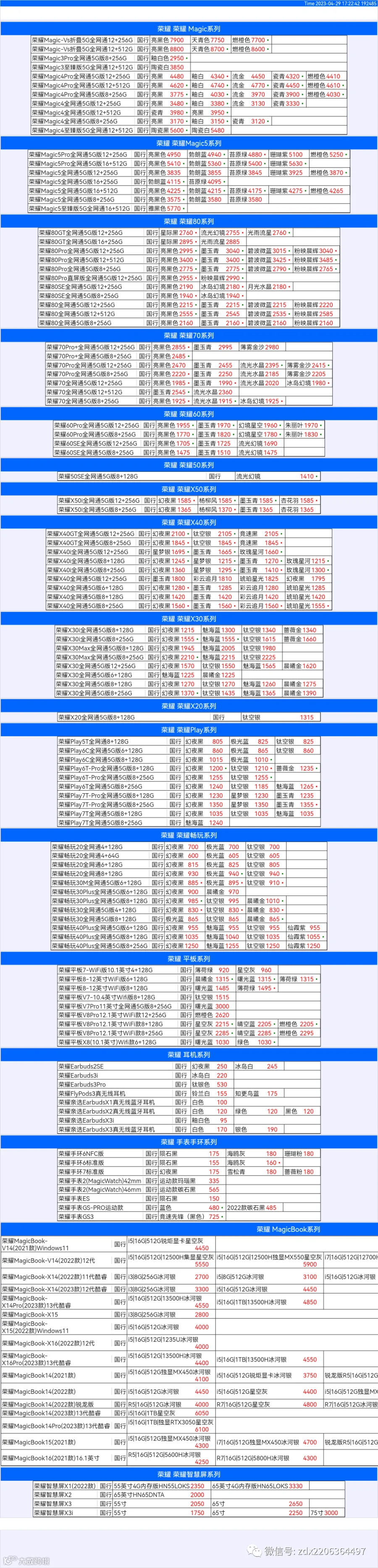 新机报价【2023年4月29日】华为   荣耀 报价 芯烨微 电子科技