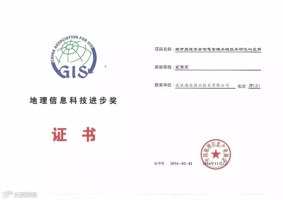 日前,国家测绘地理信息局公布2016年度地理信息科技进步奖评选结果,中海达旗下子公司武汉海达数云技术有限公司、济南市房产测绘研究院、山东建筑大学联合承担的“城市房屋安全智慧管理关键技术研究与应用”项目荣获二等奖。