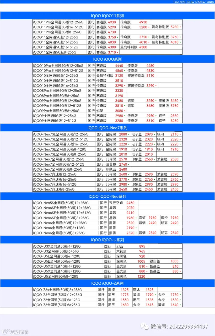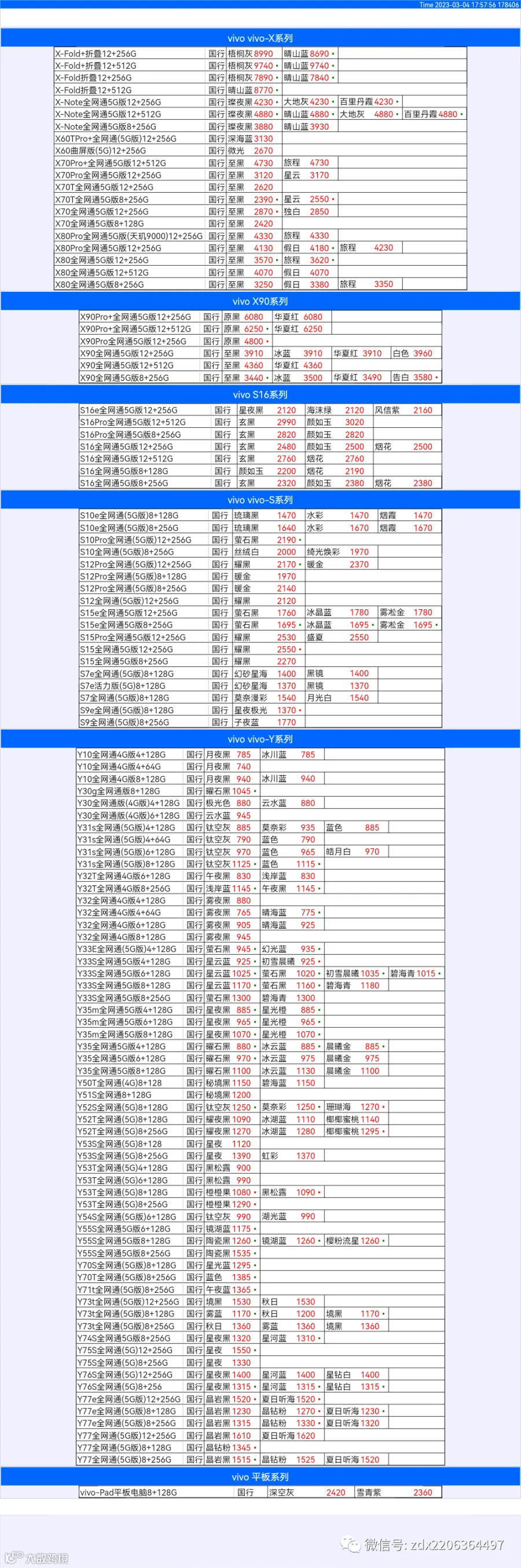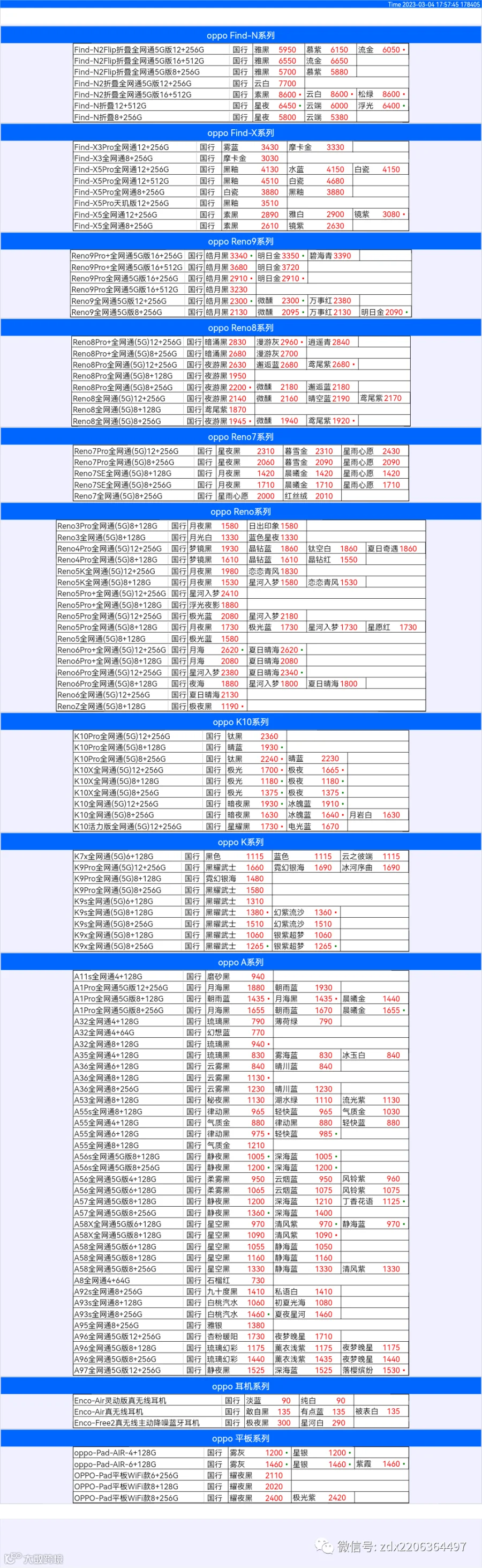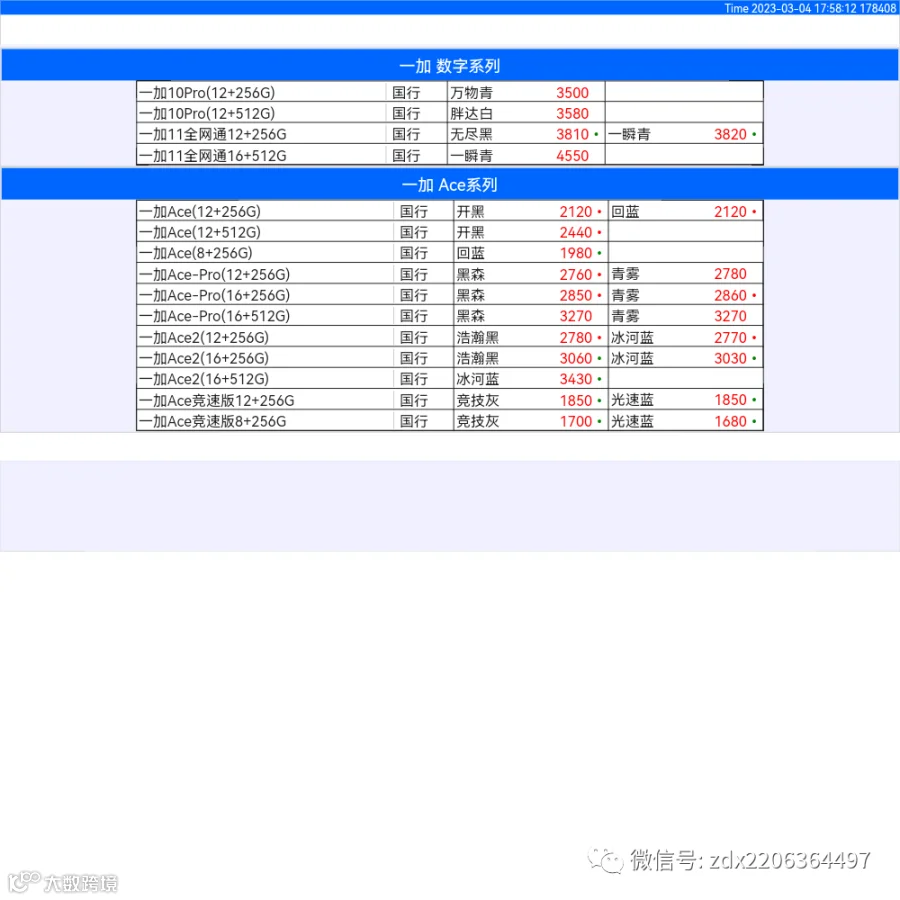 新机报价【2023年3月4日】OPPO   VIVO  IQOO   一加   真我 芯烨微 电子科技