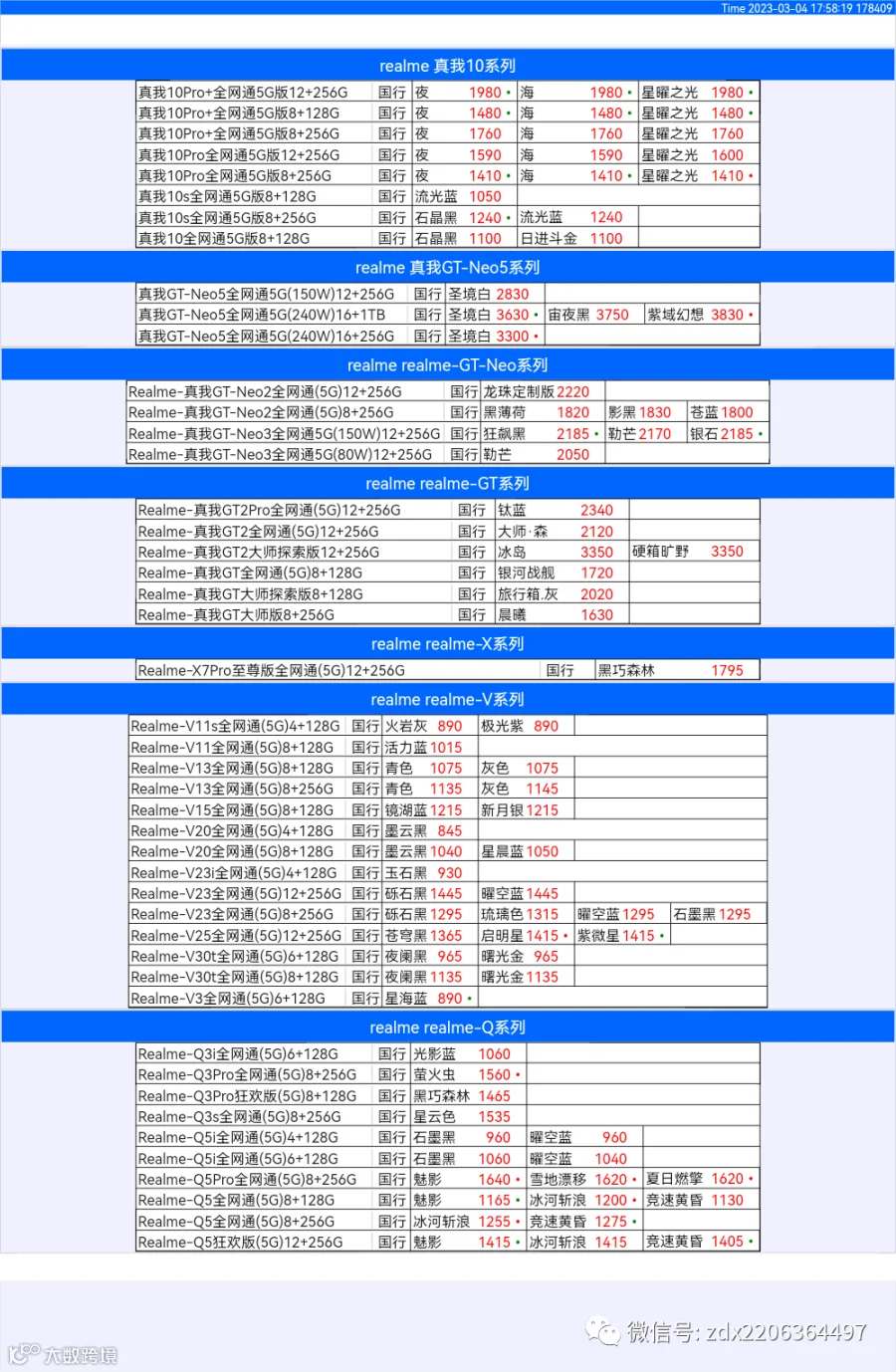 新机报价【2023年3月4日】OPPO VIVO IQOO 一加 真我