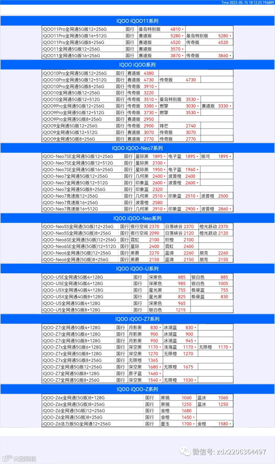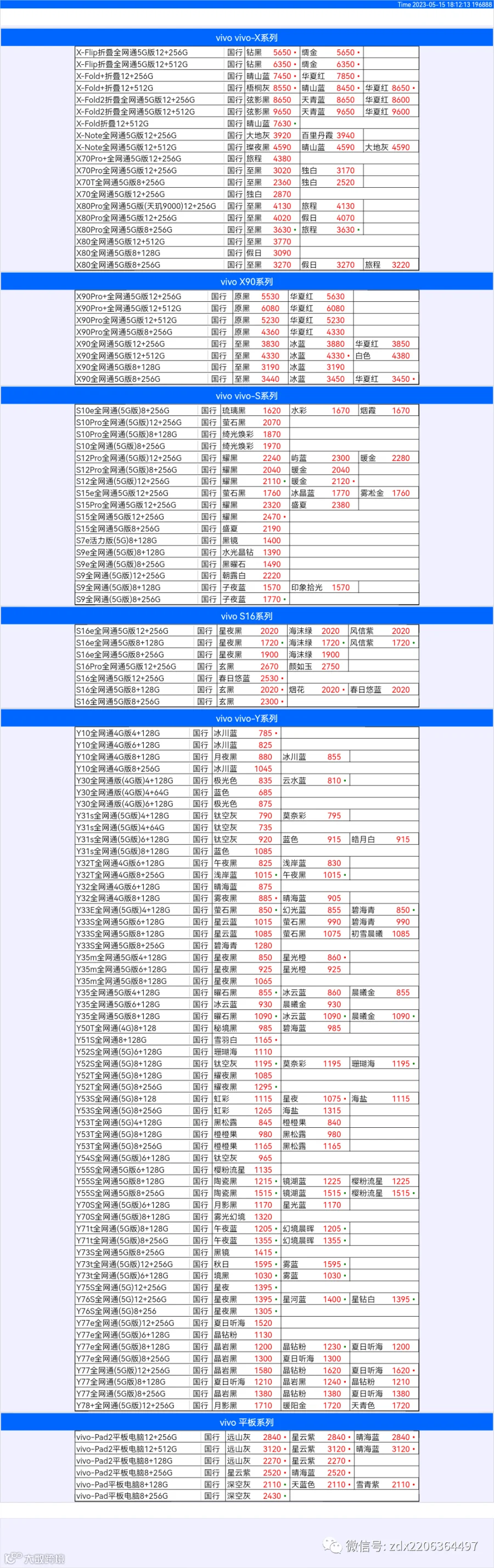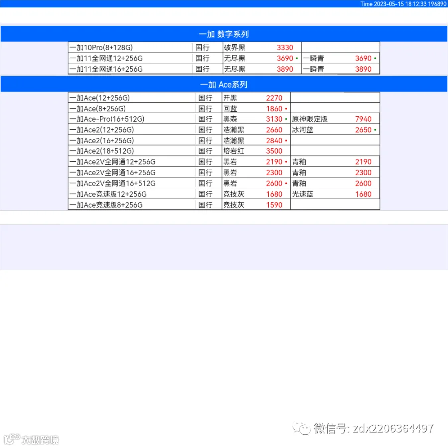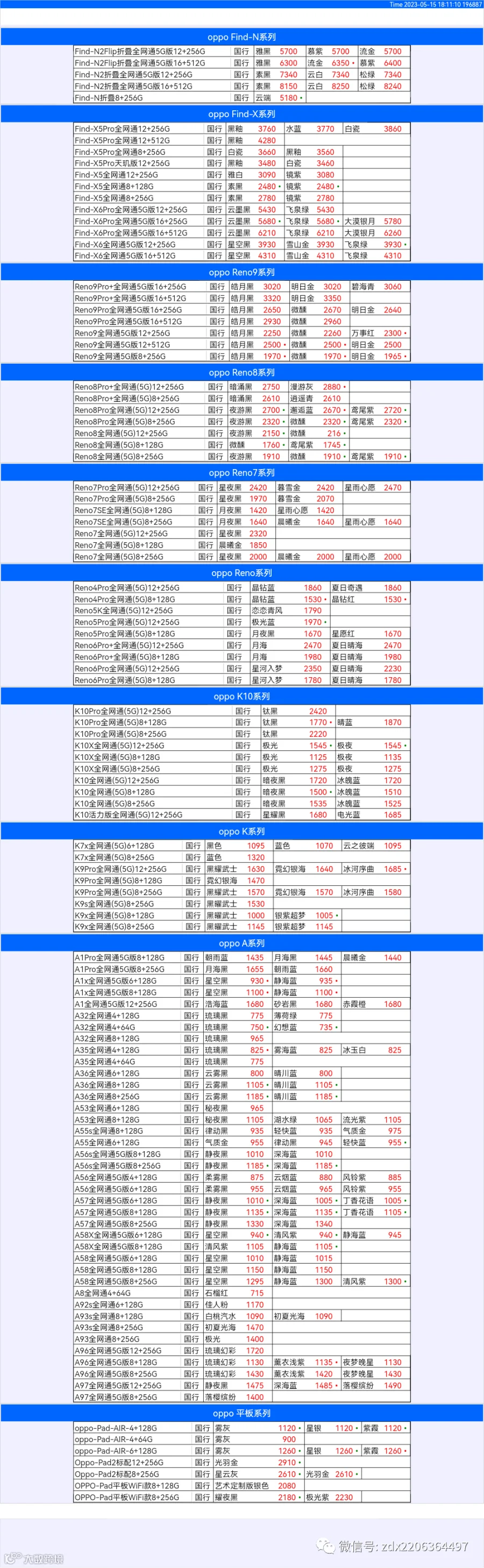 新机报价【2023年5月15日】OPPO   VIVO  IQOO   一加   真我 芯烨微 电子科技