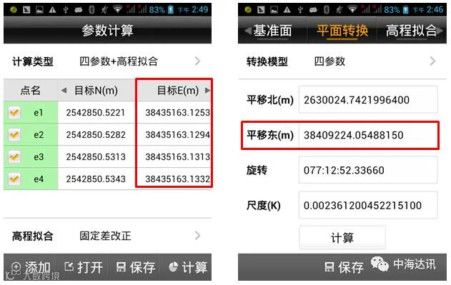 一般来说,参数计算时,只要保证源点和目标点的获取方式正确,计算结果就不会有问题,这部分需要注意的是,不同解算类型下,需要参与计算的点对数目有不同的要求。