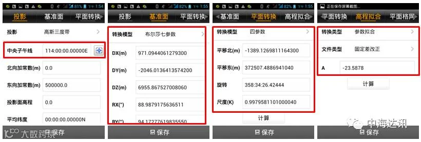 2、七参数、四参数、高程拟合参数(尺度=0?、格网文件路径?、格网区间?)。