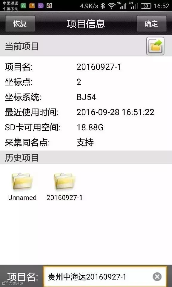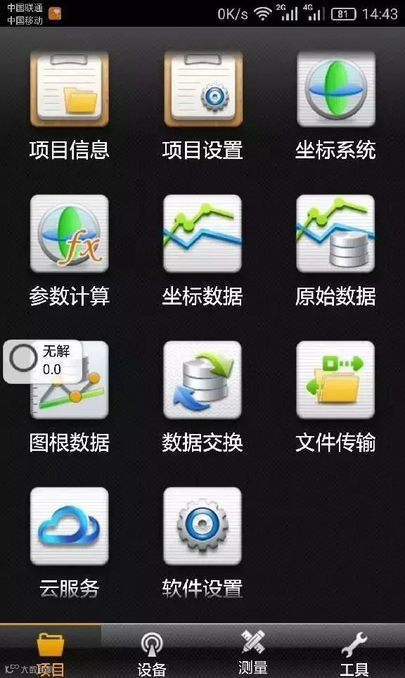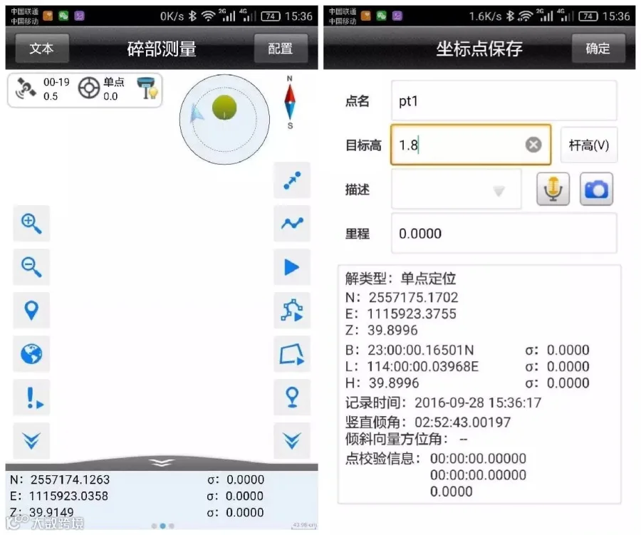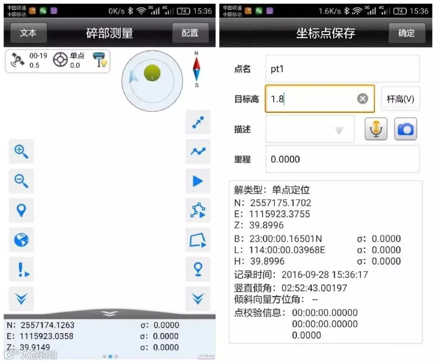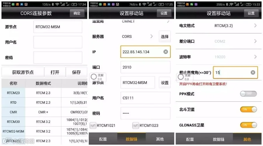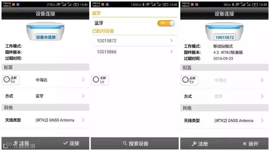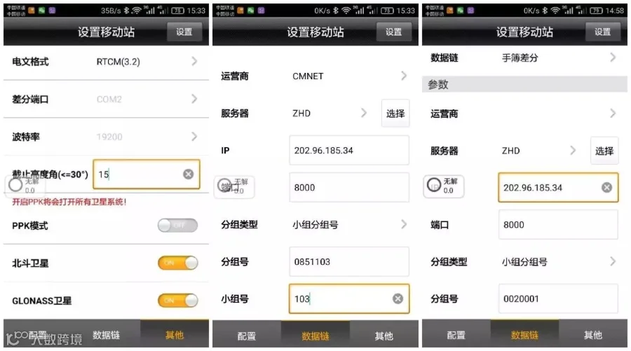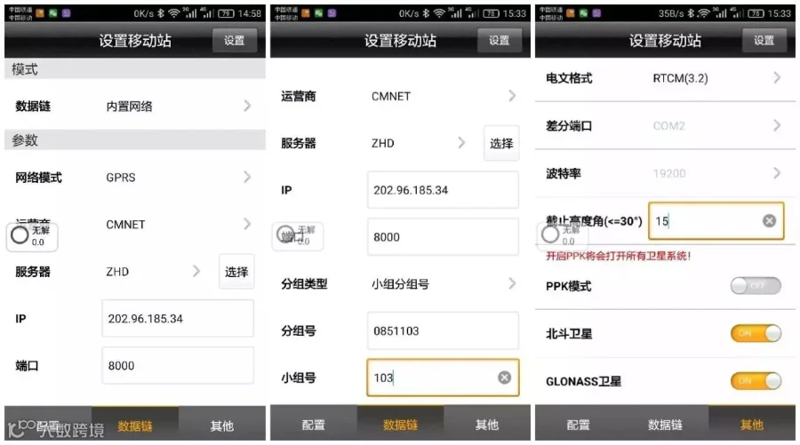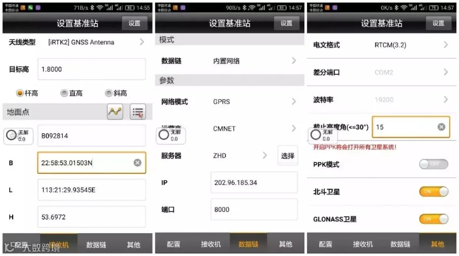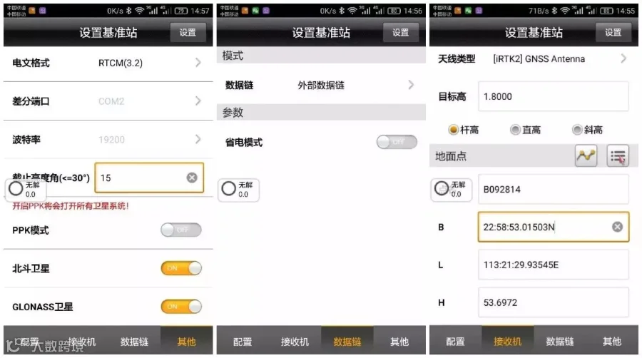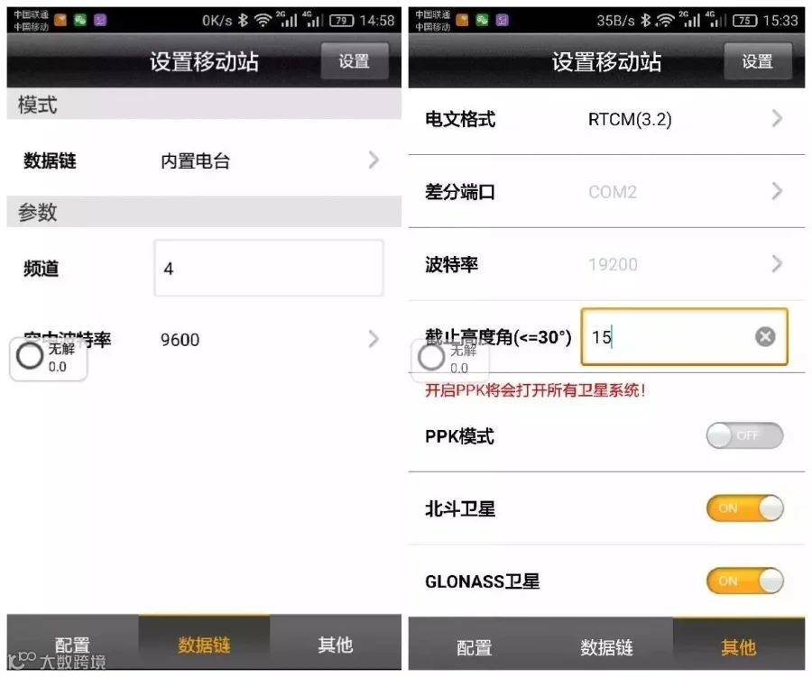 蓝牙连接上移动台,确认移动台数据链以及其他各项参数和基准站一致。