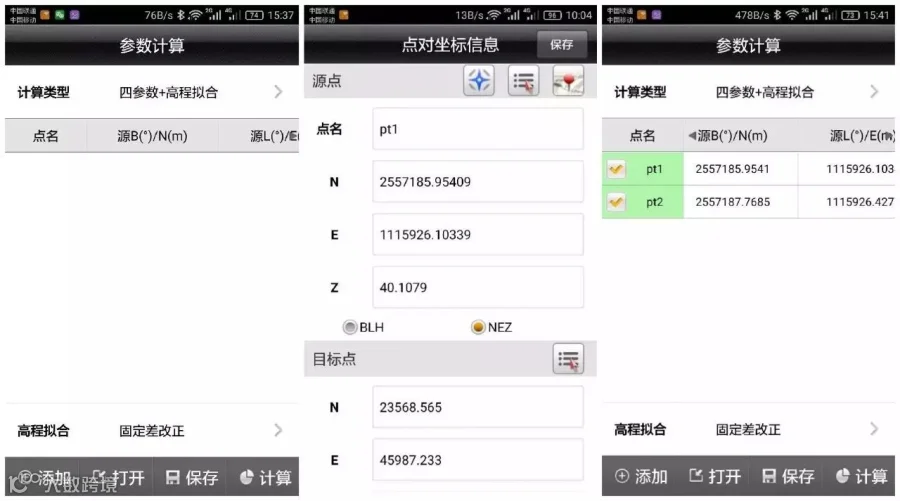 采集完两个或以上控制点之后,可以求适用于小范围测区的四参数。