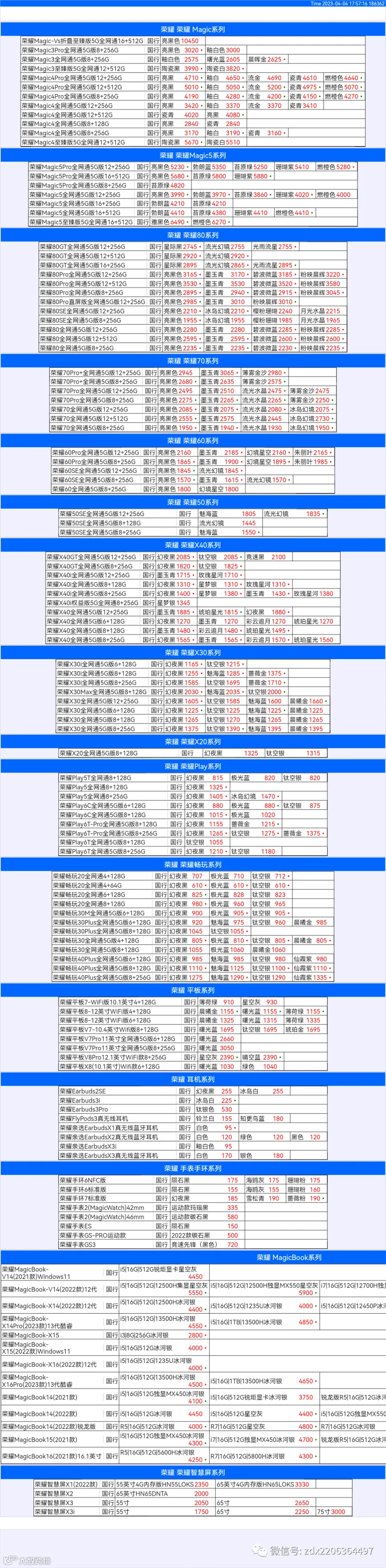 新机报价【2023年4月3日】华为   荣耀 报价 芯烨微 电子科技