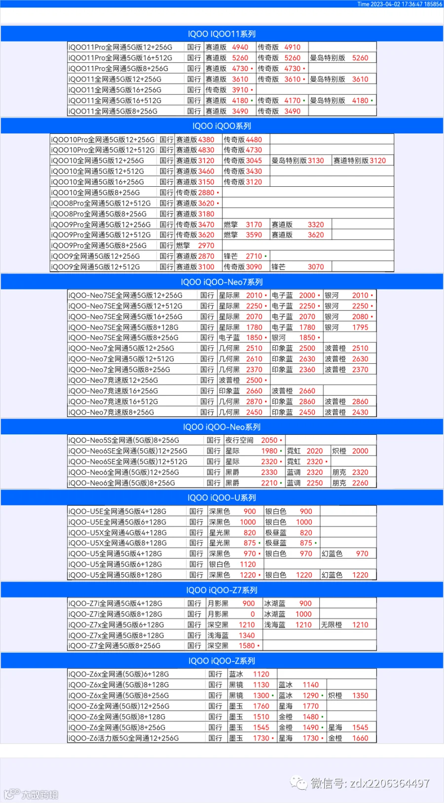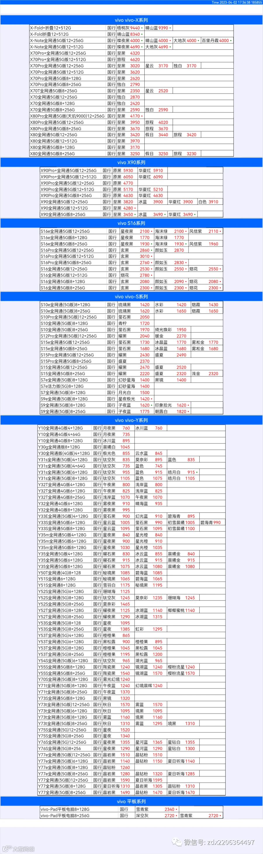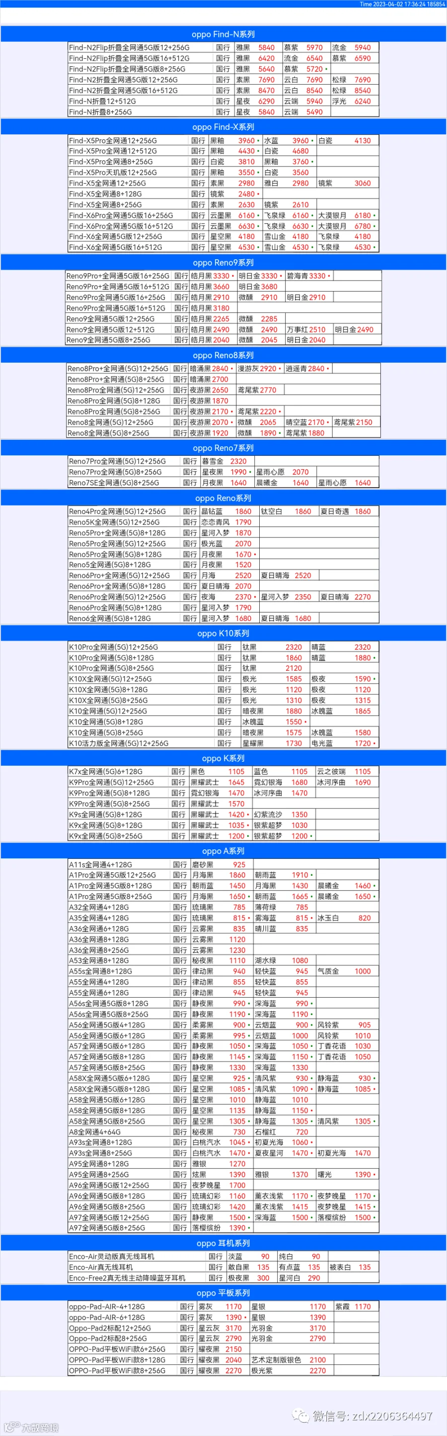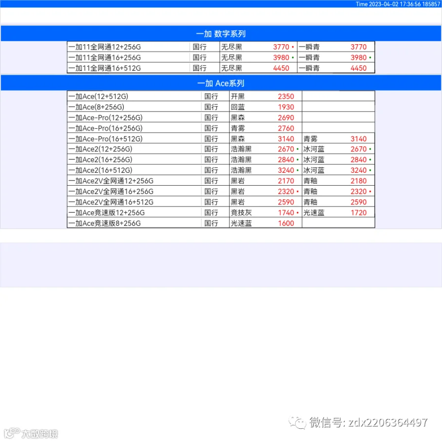 新机报价【2023年4月2日】OPPO   VIVO  IQOO   一加   真我 芯烨微 电子科技