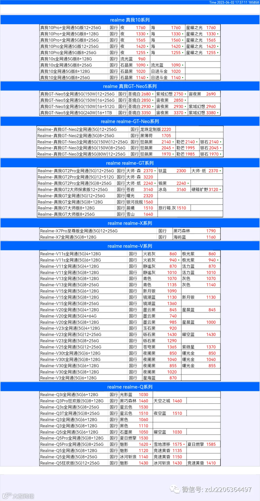 新机报价【2023年4月2日】OPPO VIVO IQOO 一加 真我