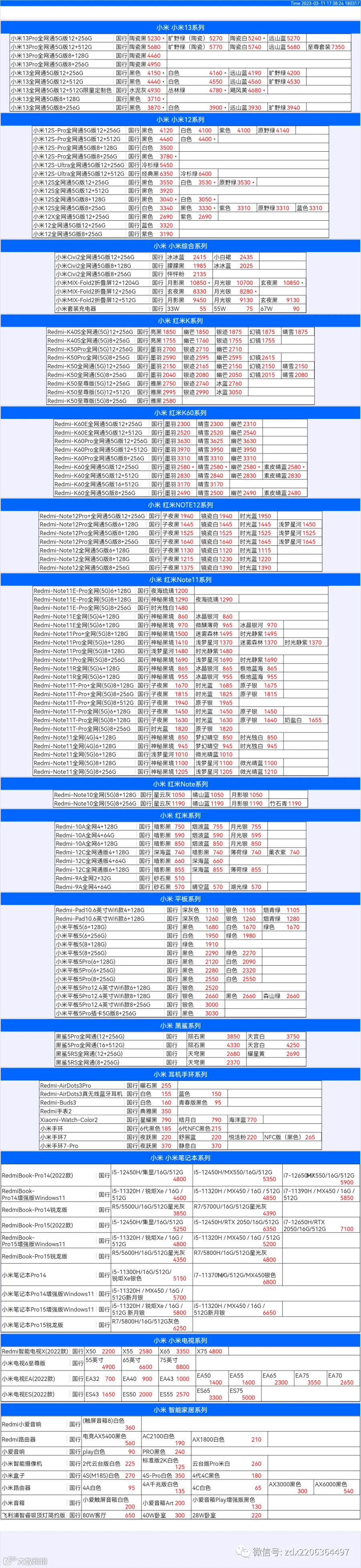 新机报价【2023年3月11日】小米  红米   黑鲨   报价 芯烨微 电子科技