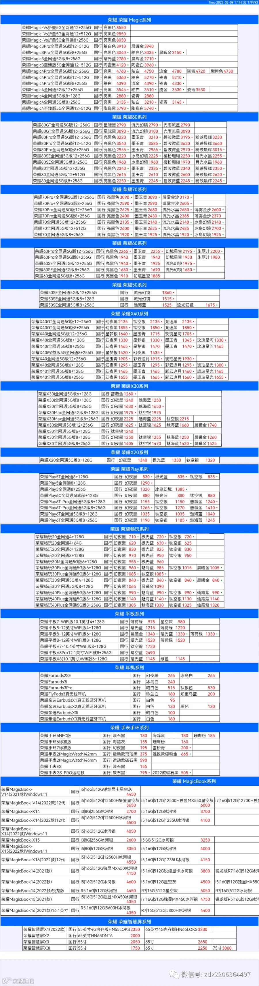 新机报价【2023年3月9日】华为   荣耀 报价 芯烨微 电子科技