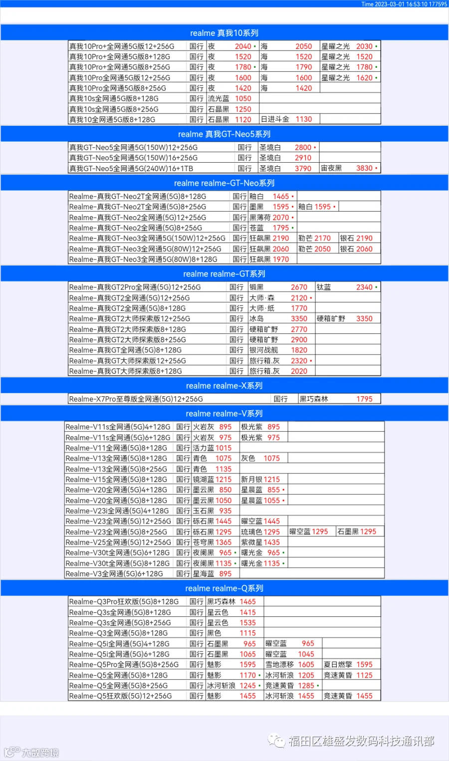 新机报价【2023年3月1日】OPPO VIVO IQOO 一加 真我