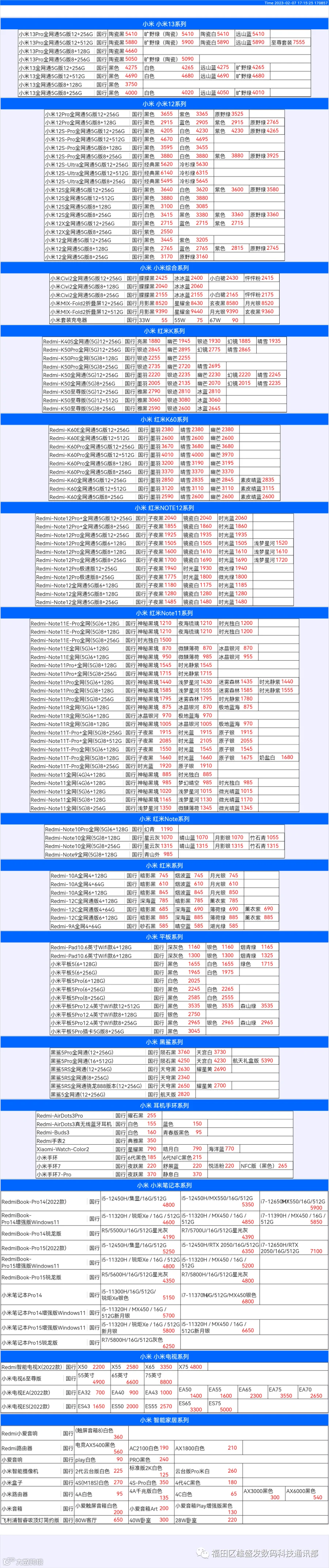 新机报价【2023年2月7日】小米  红米   黑鲨   报价 芯烨微 电子科技