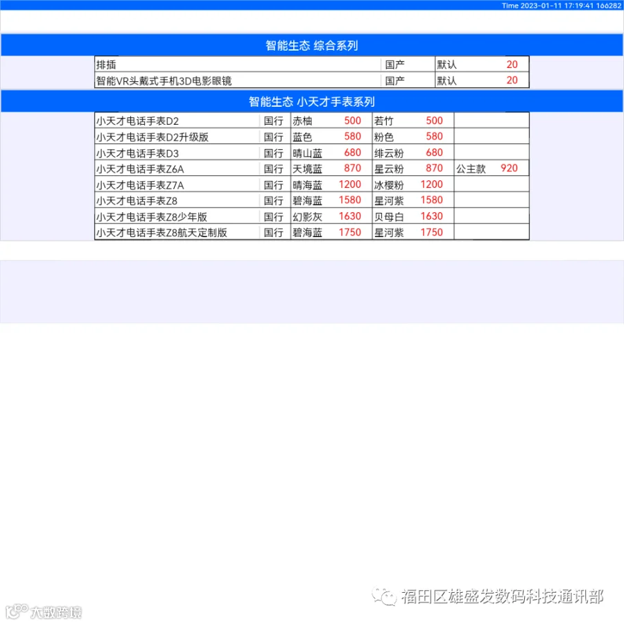 新机报价【2022年1月12日】飞利浦   小天才儿童手表报价 芯烨微 电子科技