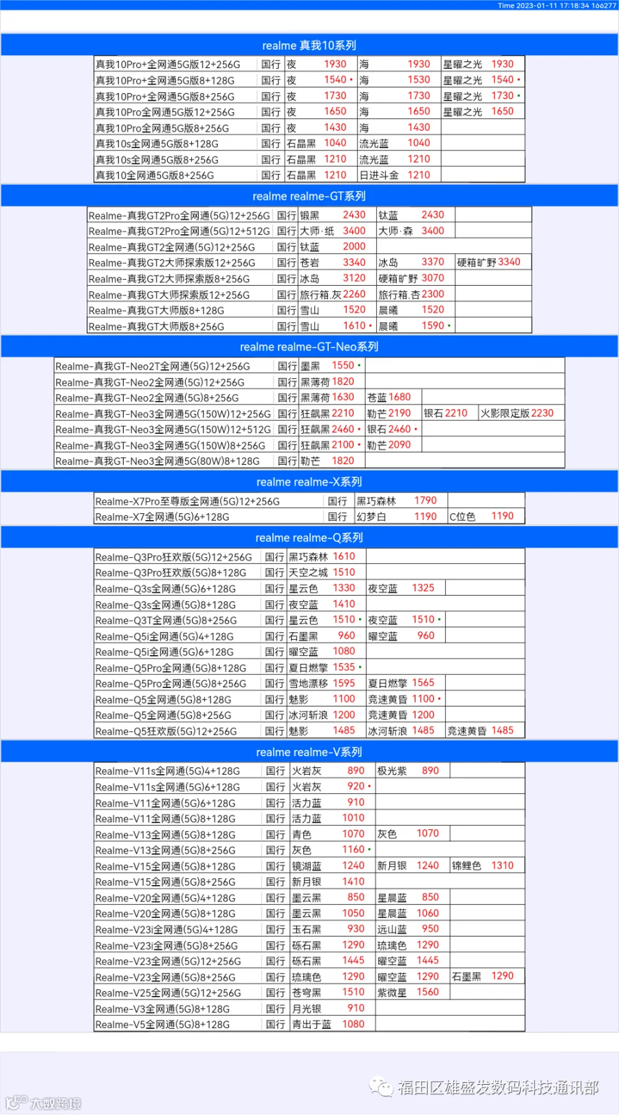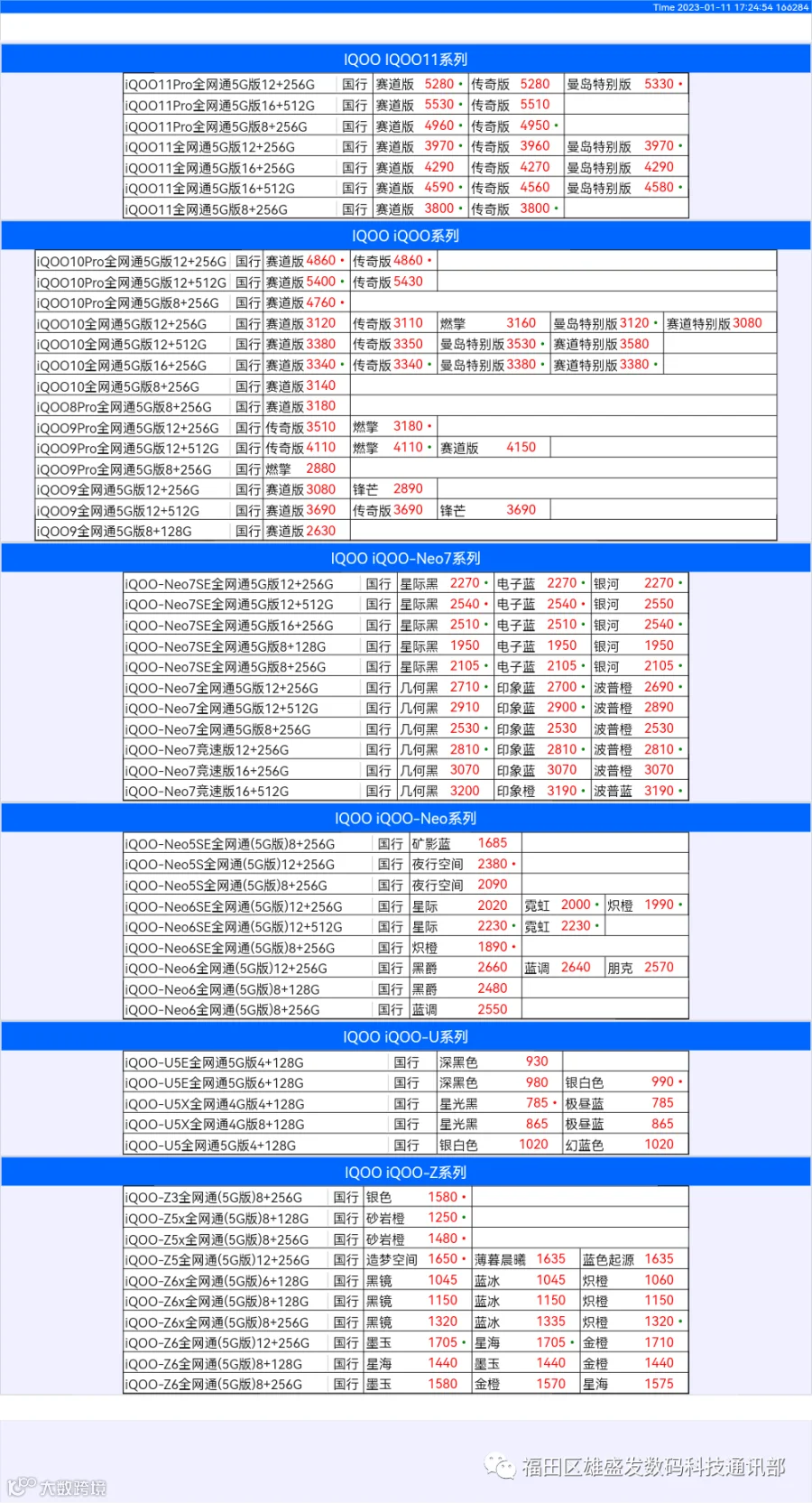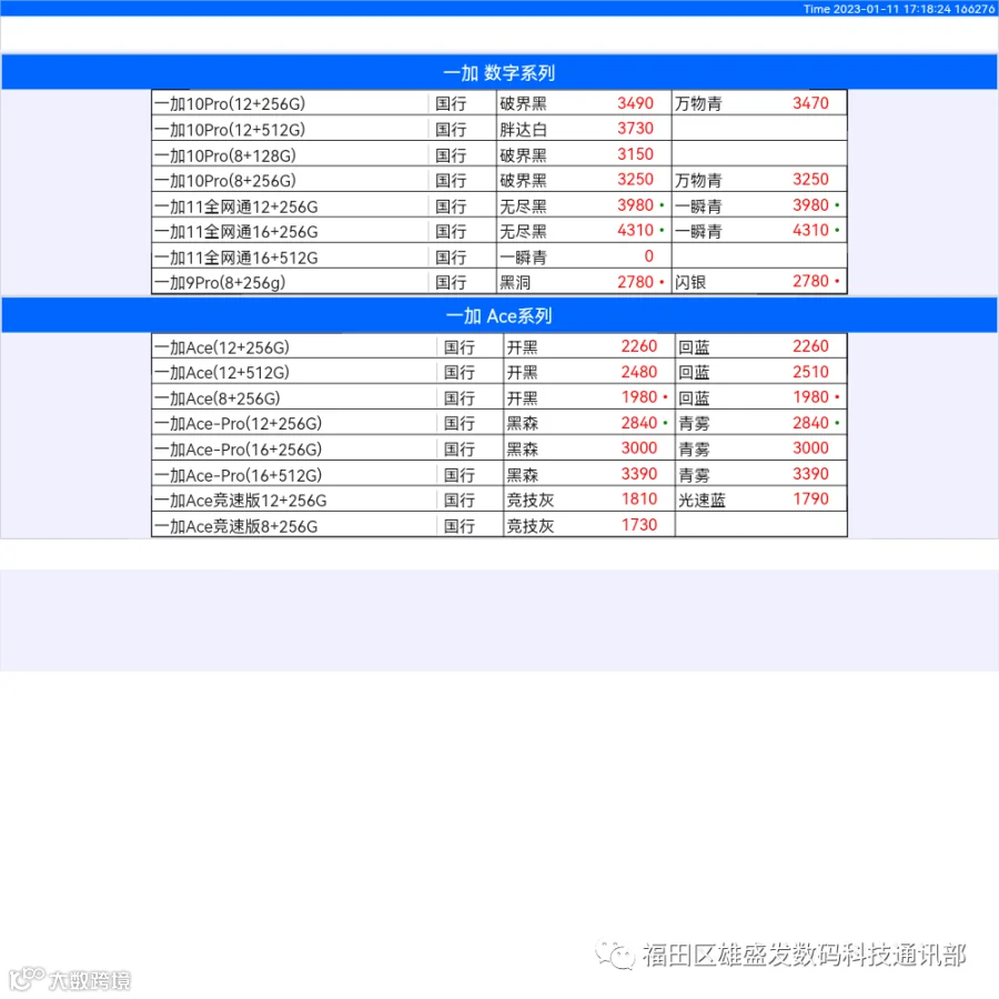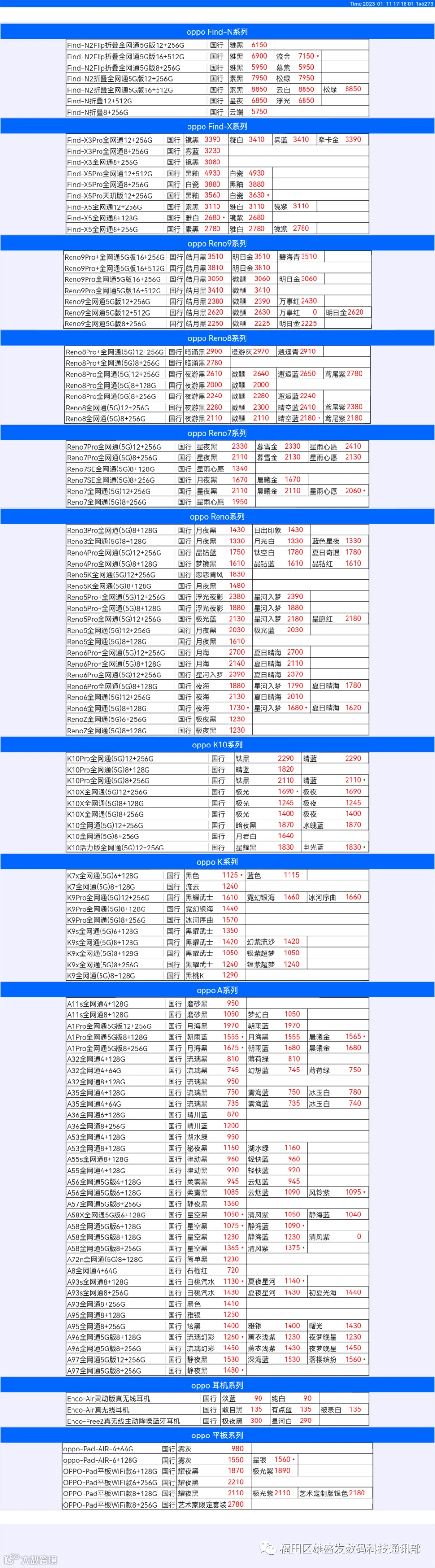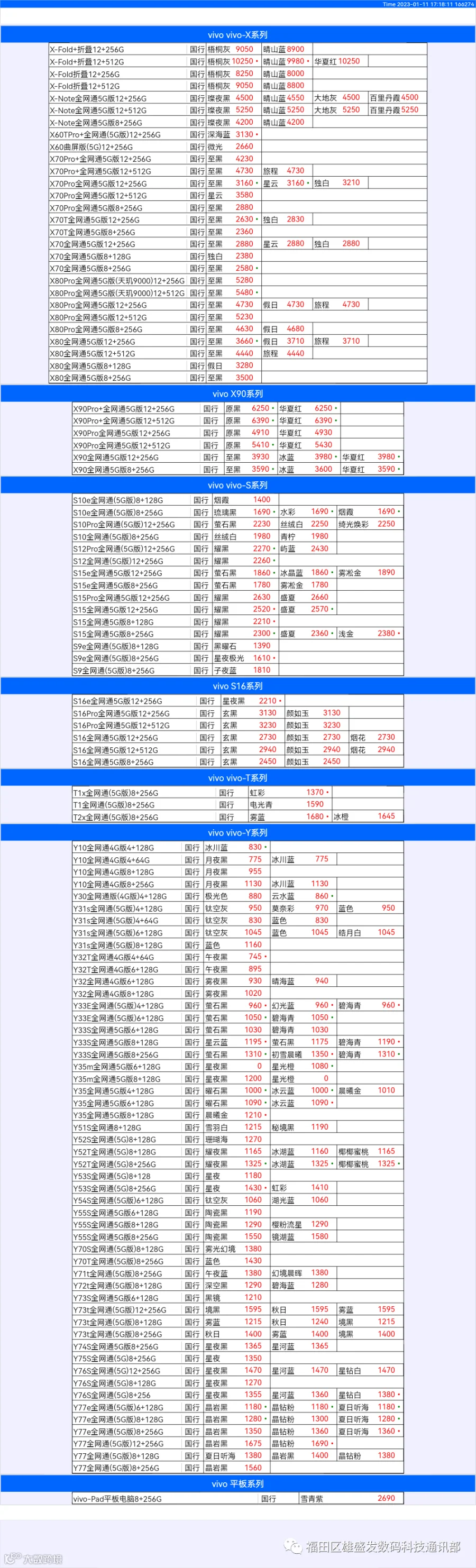 新机报价【2022年1月11日】OPPO   VIVO  IQOO   一加   真我 芯烨微 电子科技