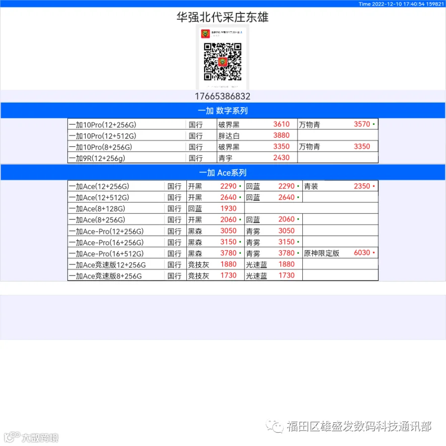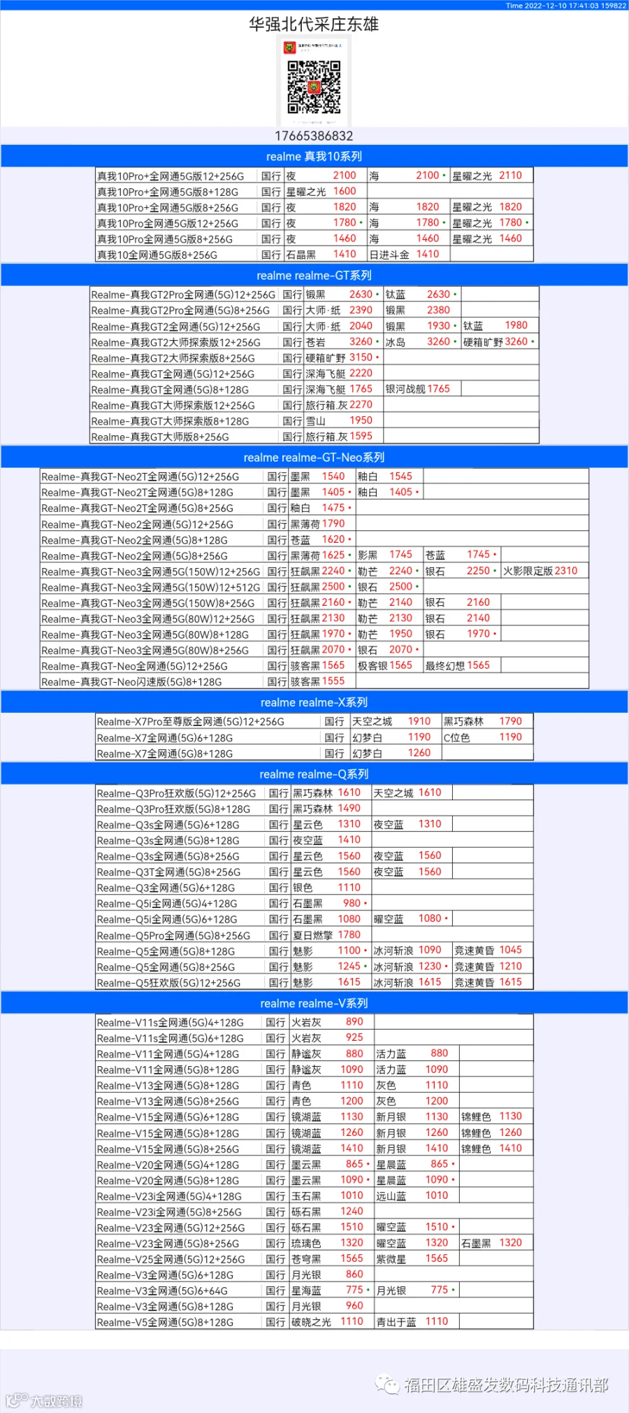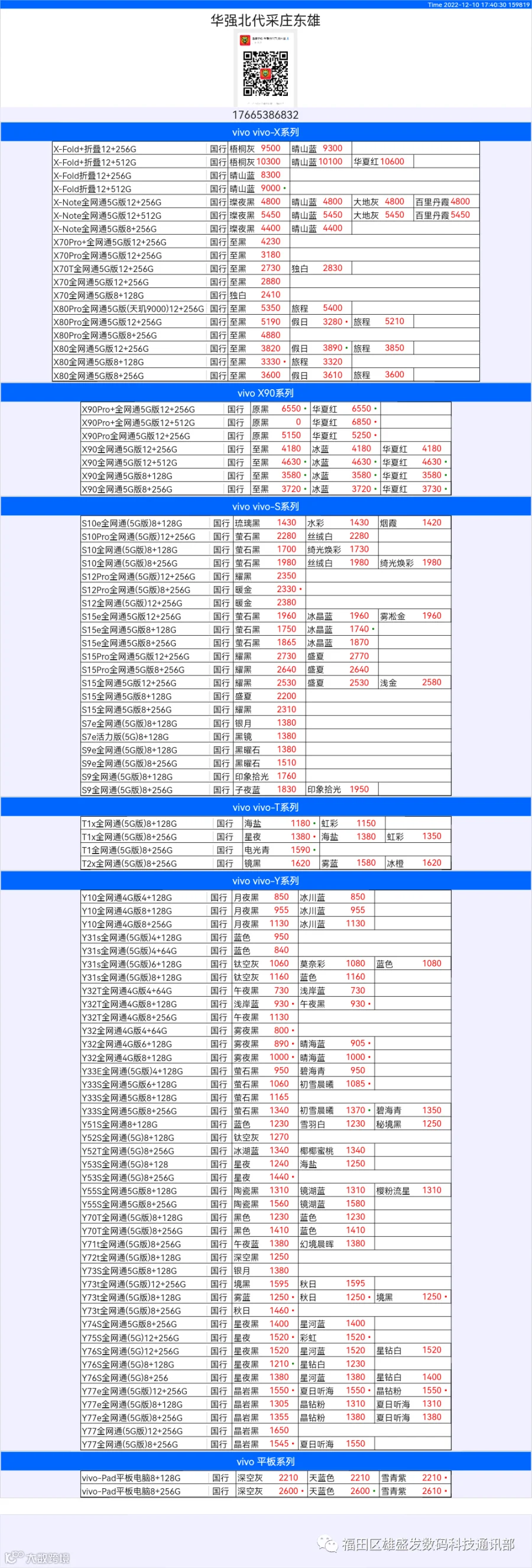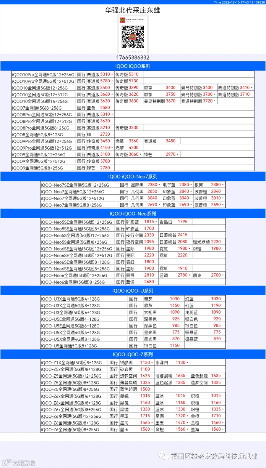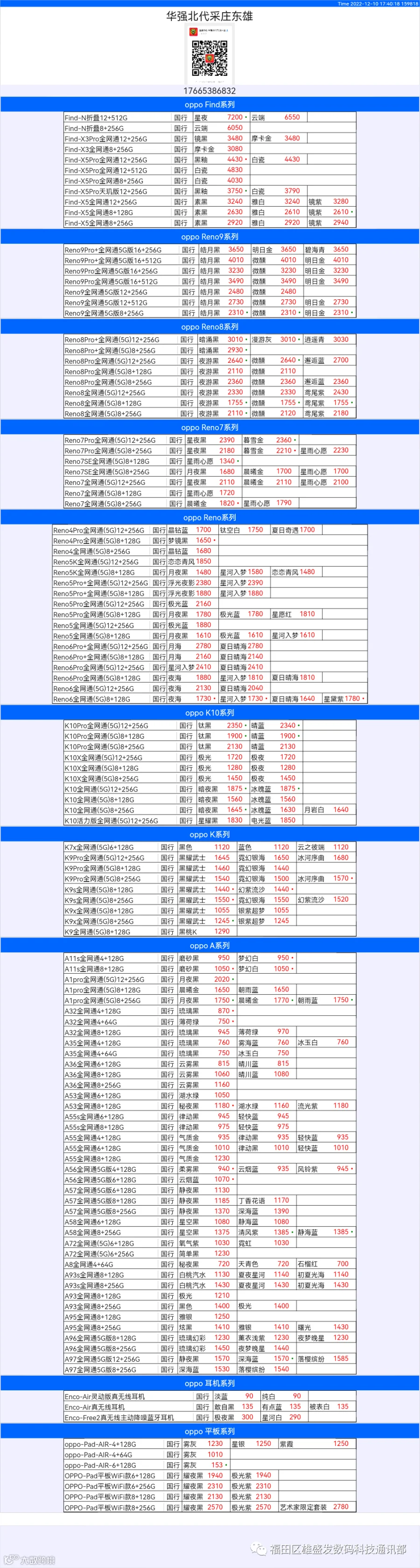 新机报价【2022年12月10日】OPPO   VIVO  IQOO   一加   真我 芯烨微 电子科技
