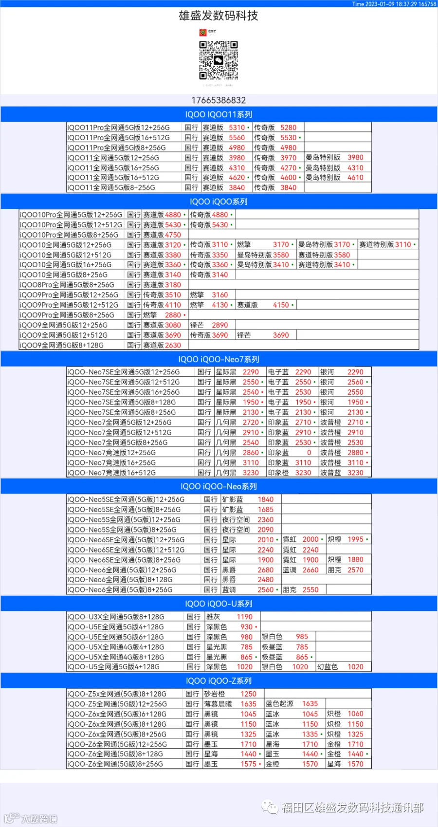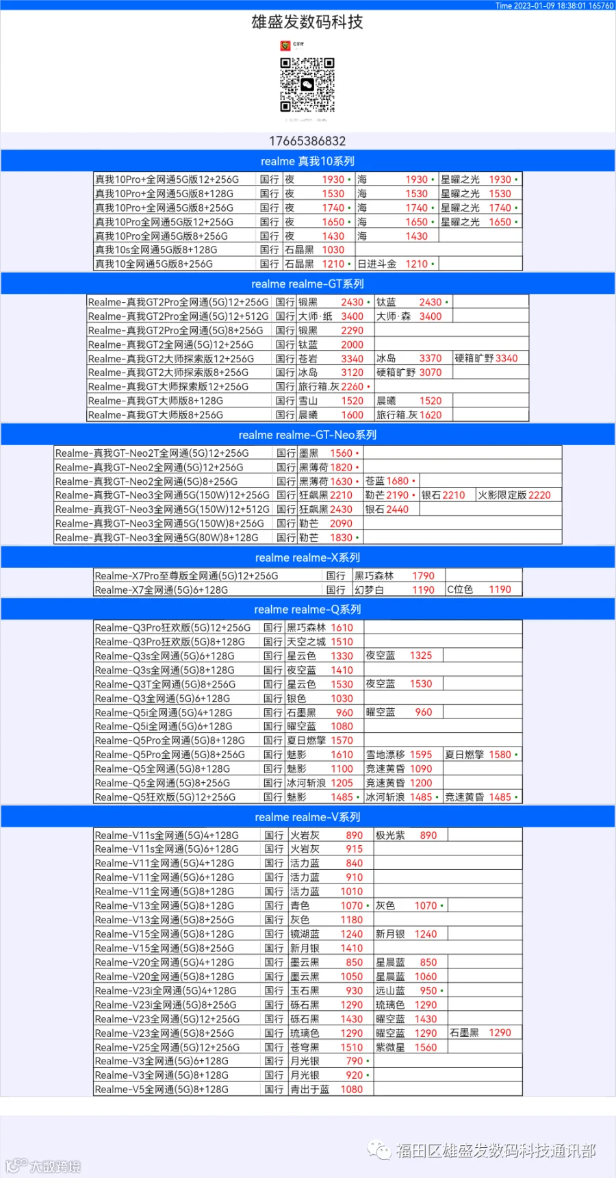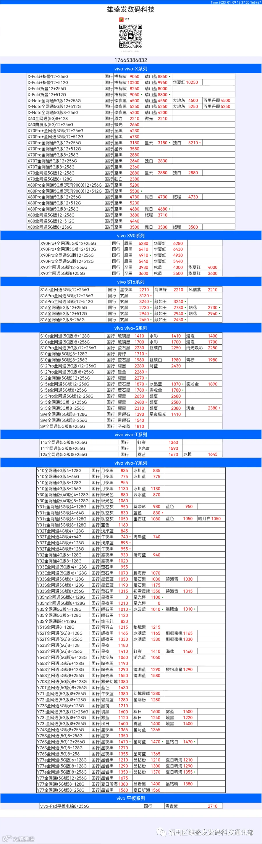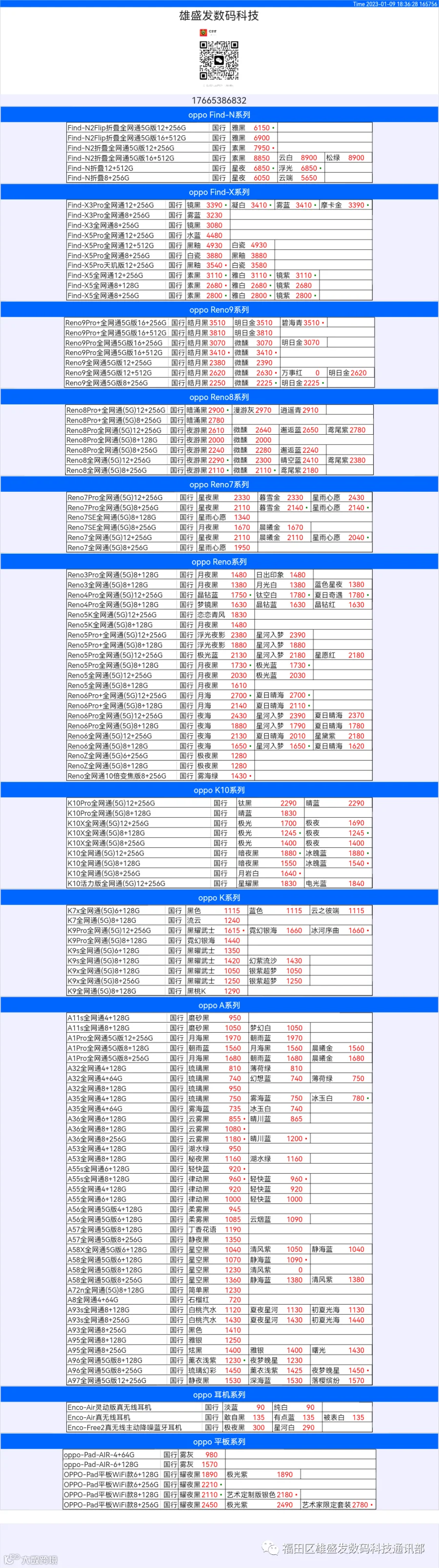 新机报价【2022年1月9日】OPPO   VIVO  IQOO   一加   真我 芯烨微 电子科技