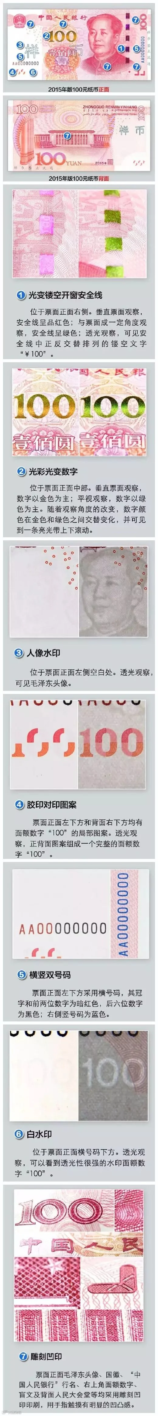央行近日发布公告称,定于2015年11月12日起,发行2015年版第五套人民币100元纸币。新版人民币100元纸币有什么不一样?看下图认识一下!