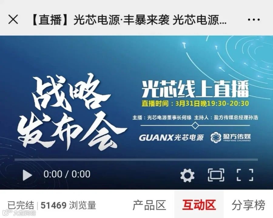 万众瞩目、期待已久的光芯电源线上新品发布会于3月31日晚7点半在光芯电源线上直播间准时开始!出席本次线上新品发布会的有我们光芯电源董事长何总何缘先生,担任本次直播的主播,以及盈方传媒总经理孙总孙浩先生,担任本次直播的主持人。