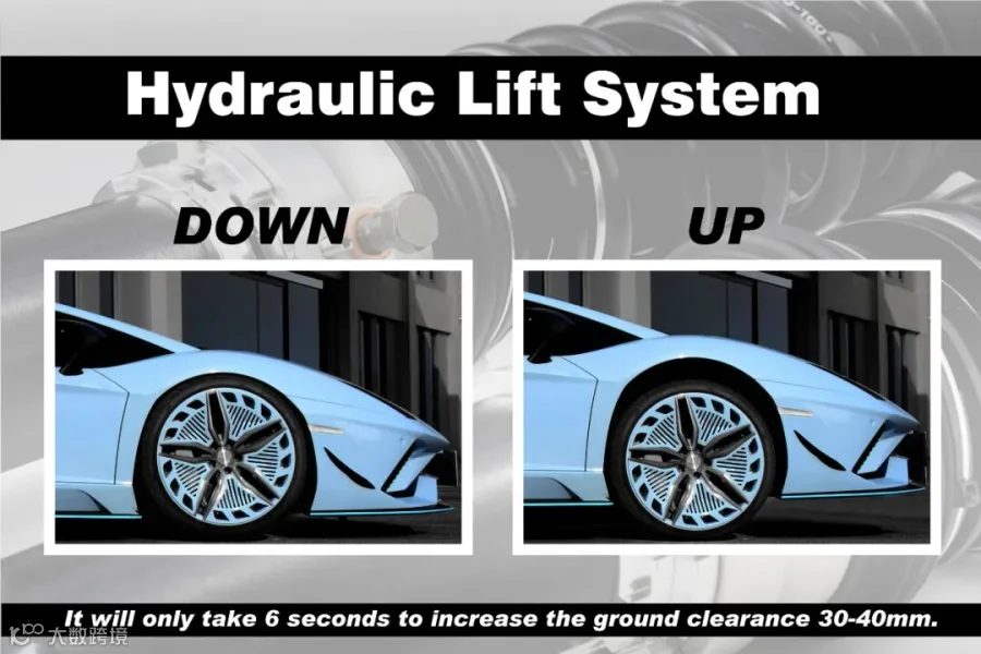 ✦调整车身高度:D2 Racing的液压升降系统可以轻松地将车身高度调整到理想位置,可以适应各种不同的道路和驾驶环境。