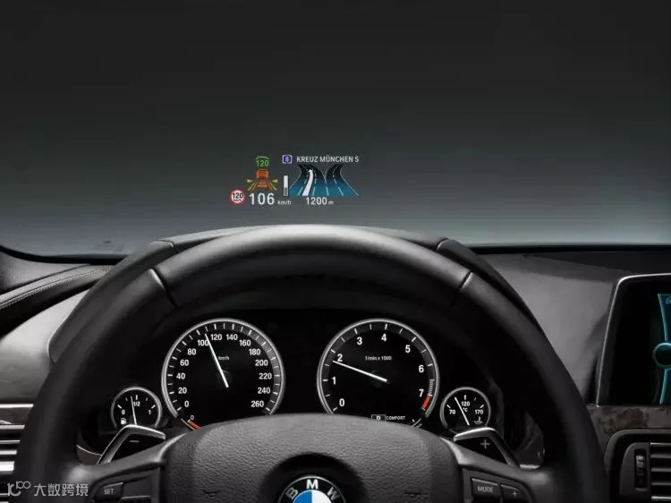 那么 宝马汽车上的HUD,你也可以理解为在宝马汽车上装上了一个特殊的小型投影仪,这个投影仪可以把车速、油量等信息投射到前挡风玻璃上,而且这些信息显示的位置正好位于你平视的视野范围内,方便了你查看相关的信息。这就是宝马汽车上的HUD。